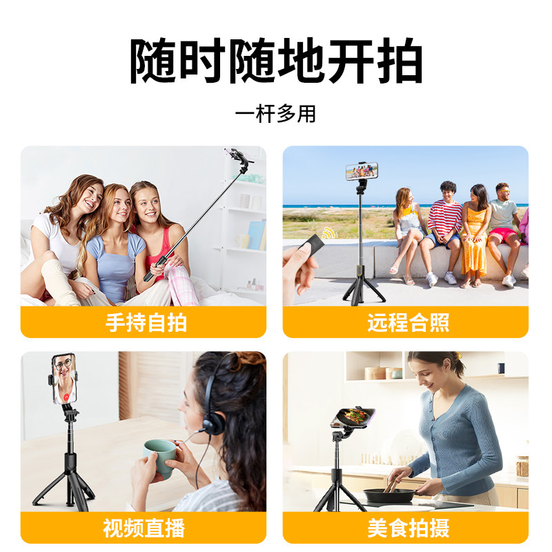 新款手机自拍杆万能防抖拍照神器可伸缩旋转蓝牙通用多功能三脚架