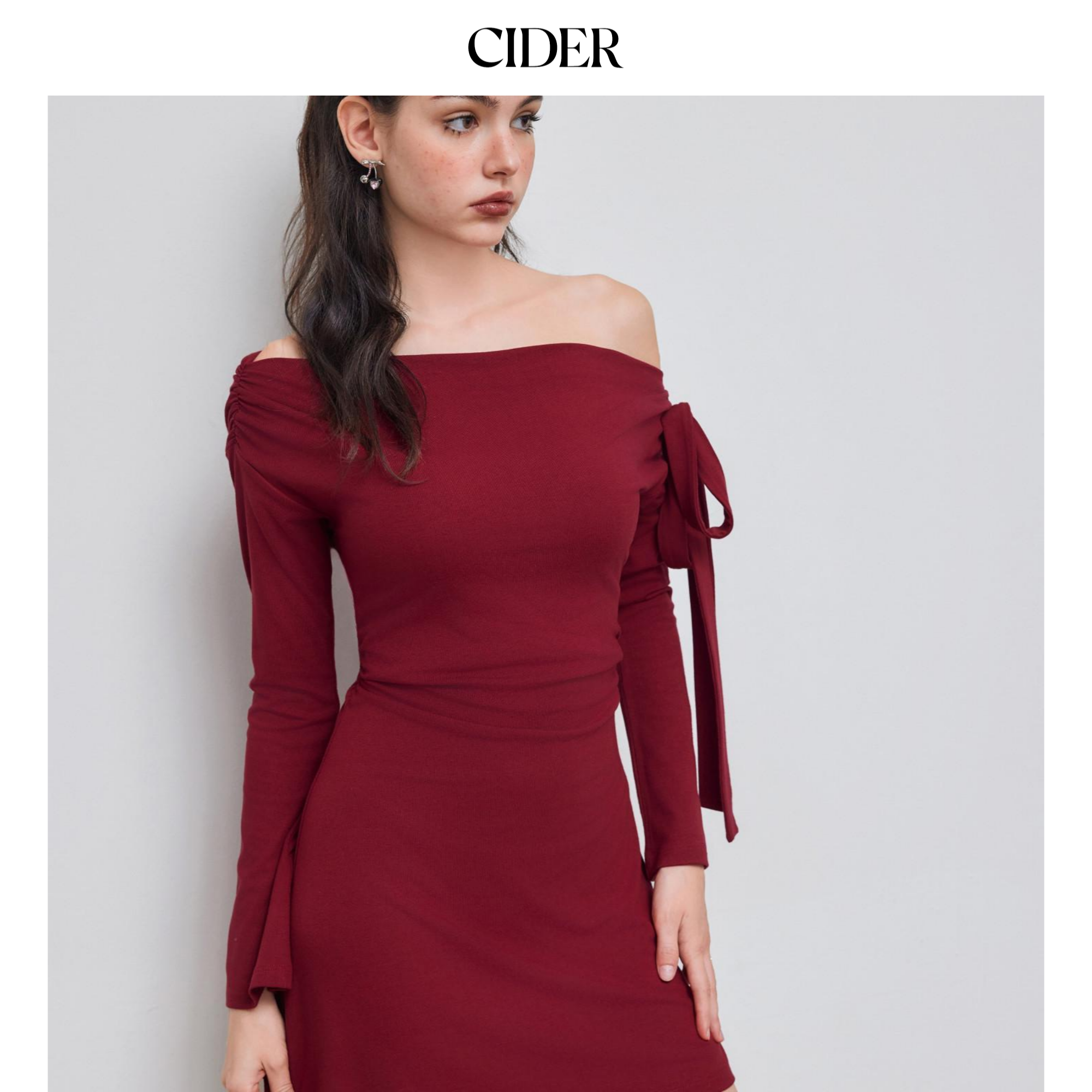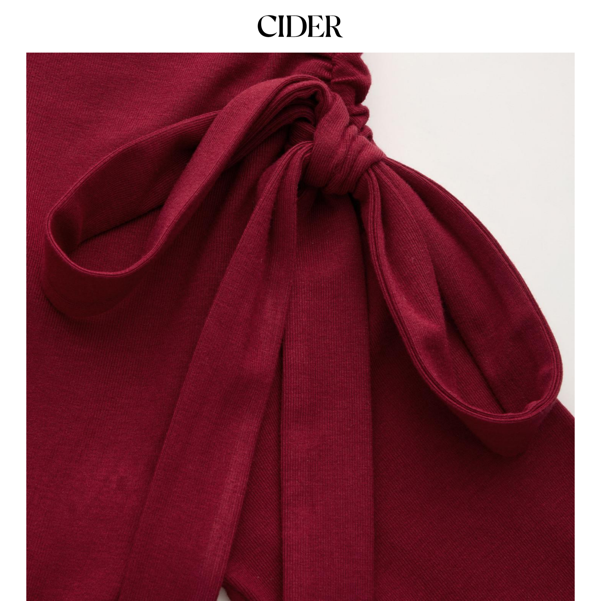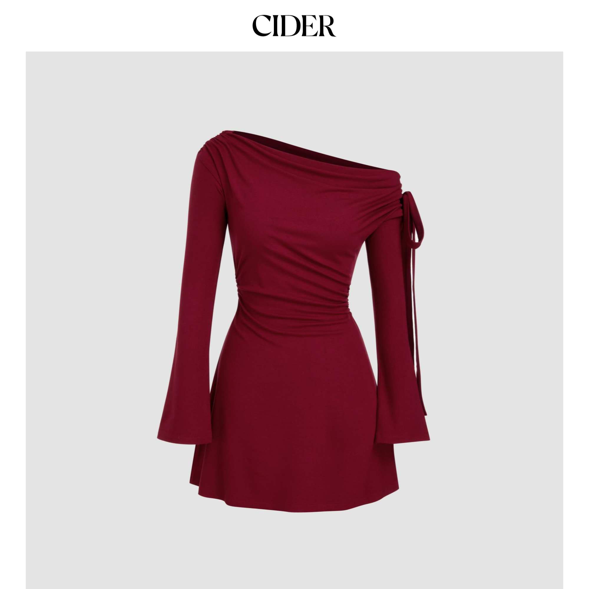 CIDER新年穿搭女装不对称领褶皱系带迷你红色连衣裙113993237
