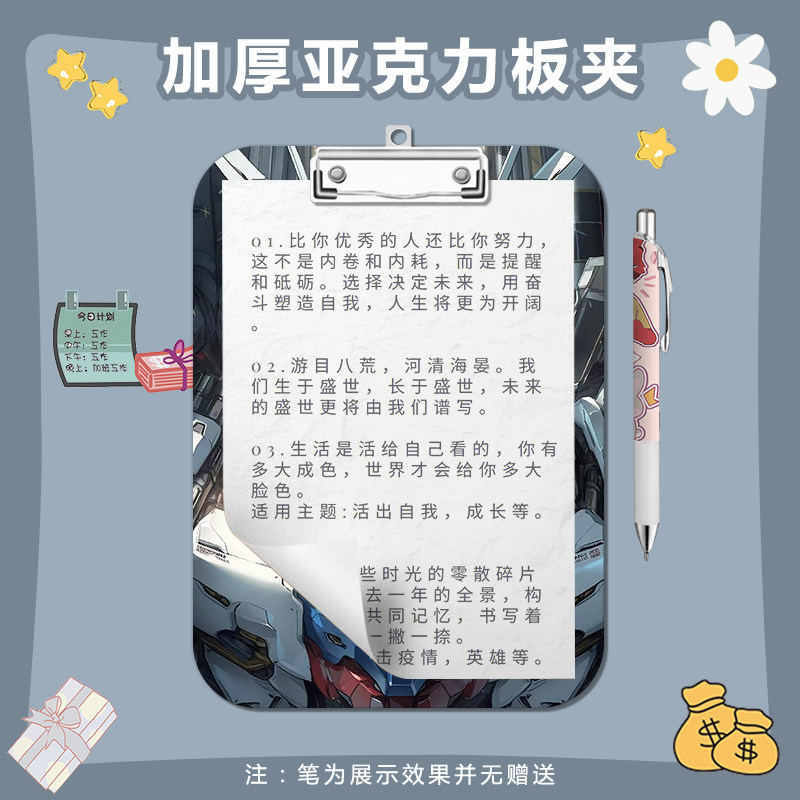 炫酷高达夹板写字垫板a4夹亚克力文件夹便签试卷a5a6学习文具画画
