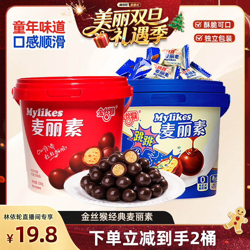 【林依轮直播间】金丝猴麦丽素原味跳跳桶装巧克力(代可可脂)