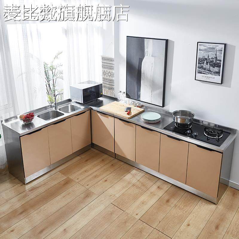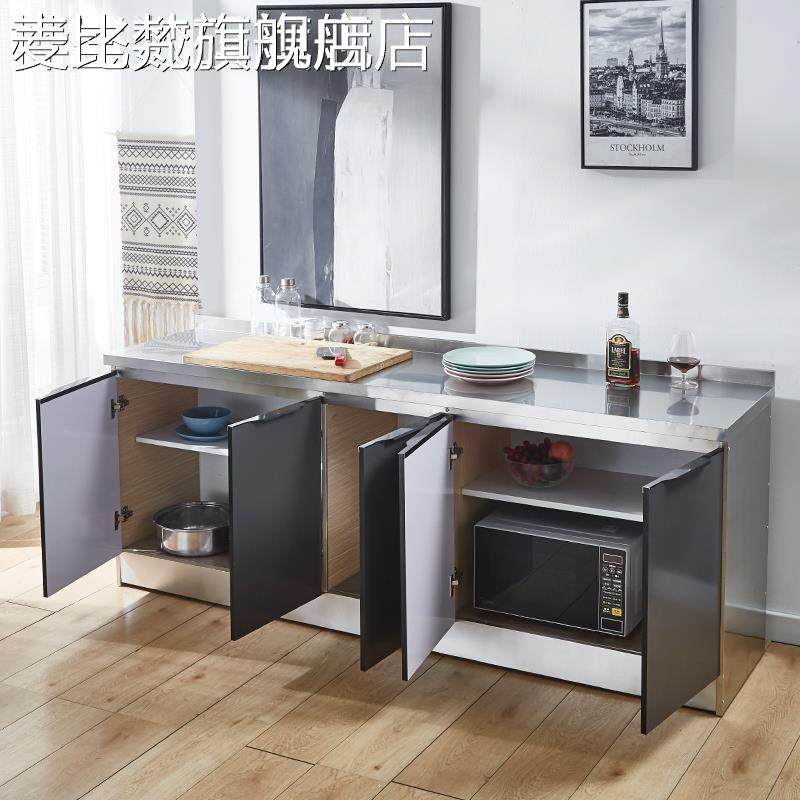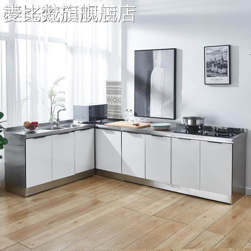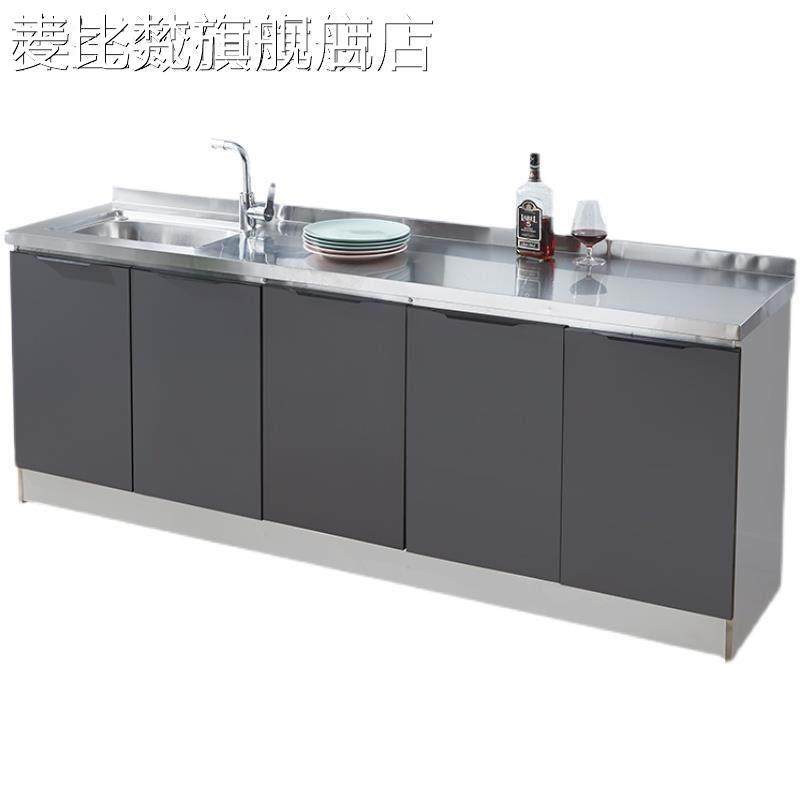 麦比梵不锈钢简易橱柜家用小户型厨房整体组装经济型一体储物柜子灶台柜床笠拉车