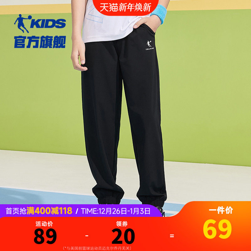 乔丹童装男童速干裤儿童长裤2025夏季新款大童防蚊裤夏装运动裤子