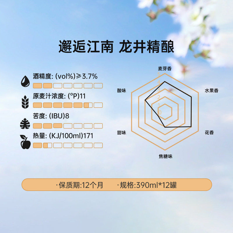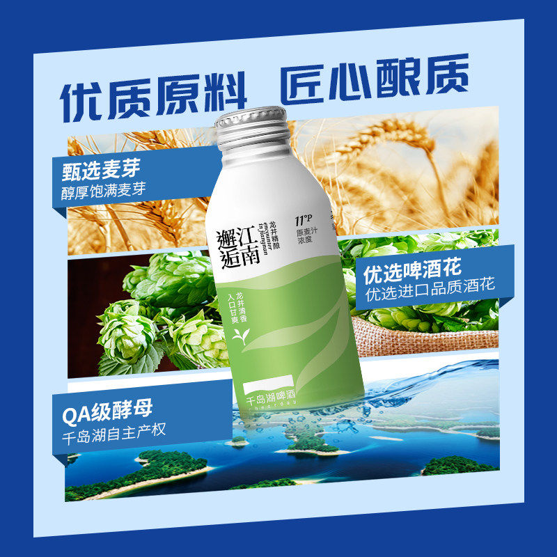 千岛湖龙井小麦精酿特色茶啤390ml*12罐春节送礼年货团购邂逅江南
