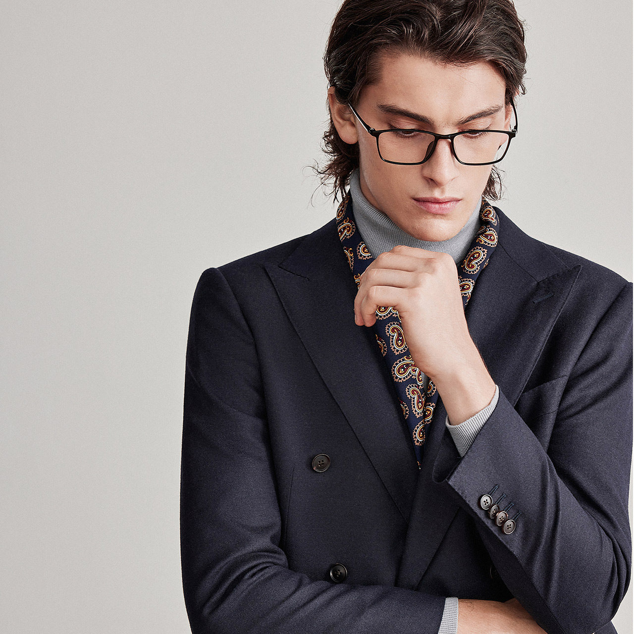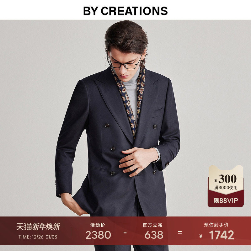柏品法兰绒西服套装男纯羊毛复古保暖双排扣戗驳领商务休闲西装