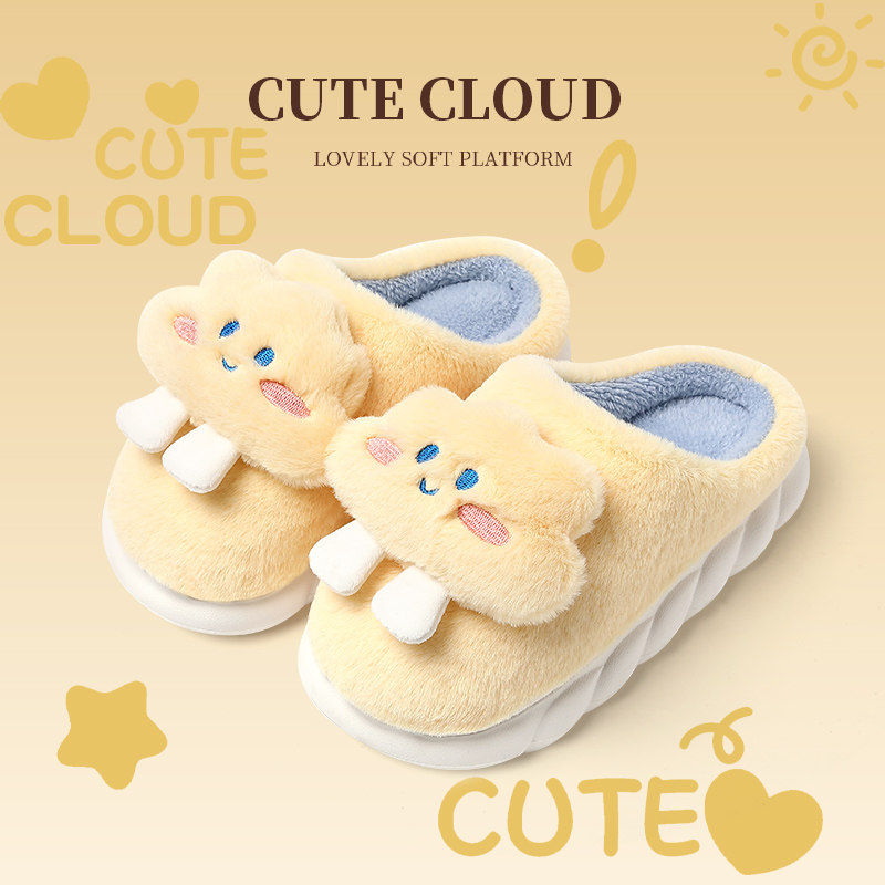 云朵棉拖鞋女秋冬季可爱外穿室内家居厚底防滑家用毛绒保暖棉拖女