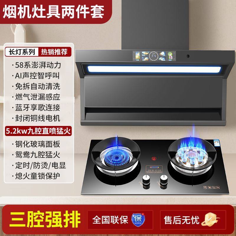 阿拉好太太抽油烟机燃气灶套装家用厨房顶侧三腔烟灶两件套组合