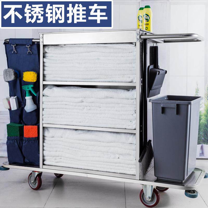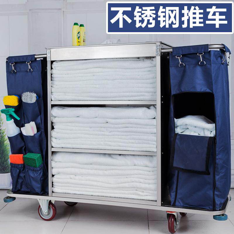 酒店布草车宾馆客房服务车不锈钢推车双边房口车清洁保洁车工作车