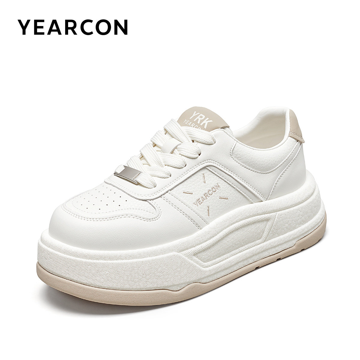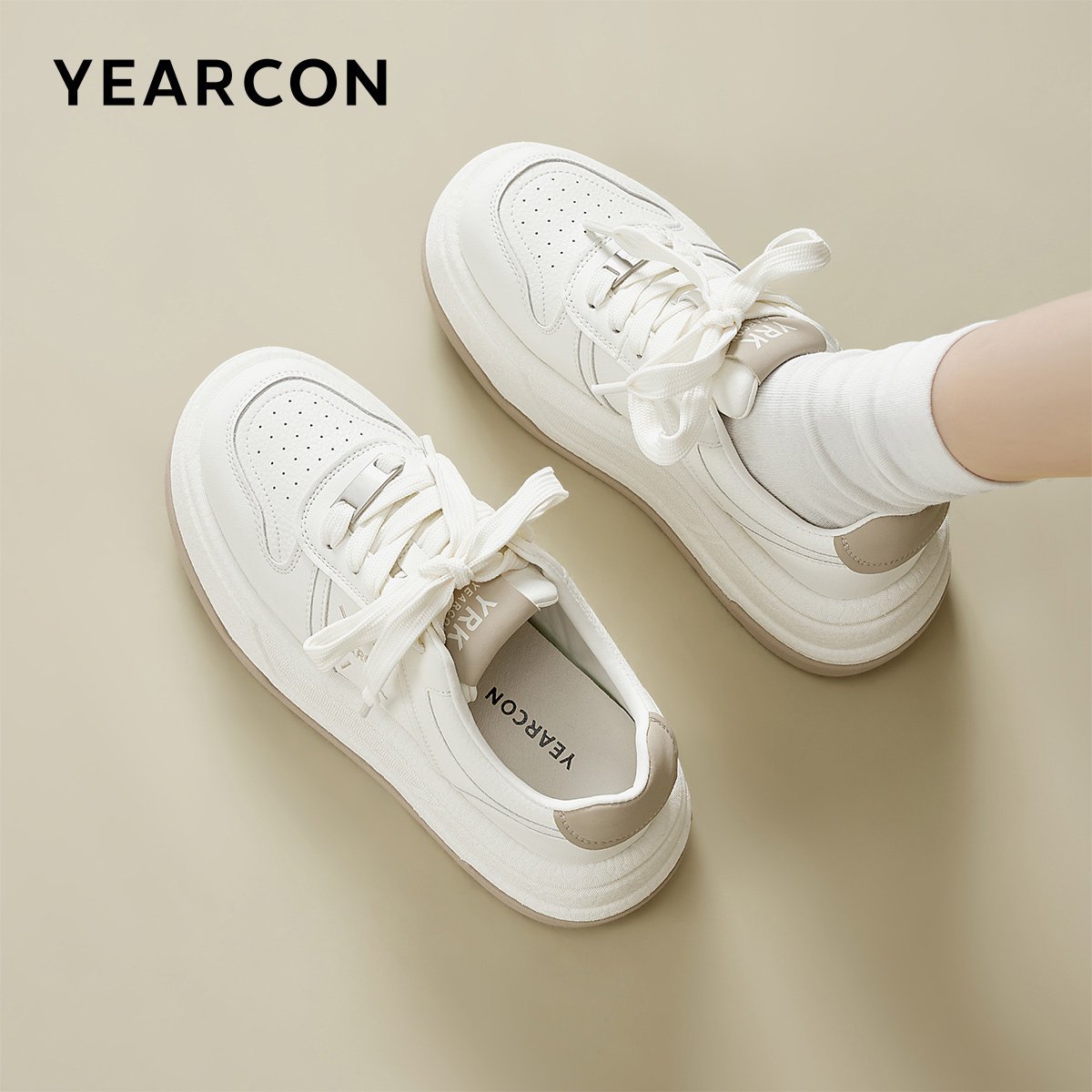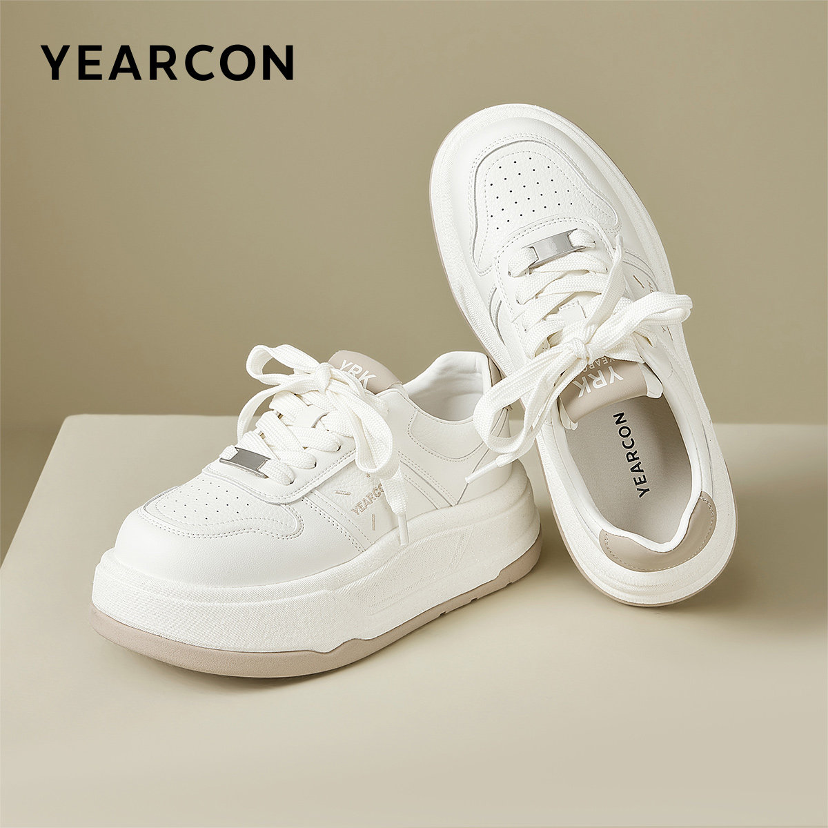 意尔康女鞋春秋季单鞋运动休闲皮鞋时尚松糕厚底小白鞋板鞋女士