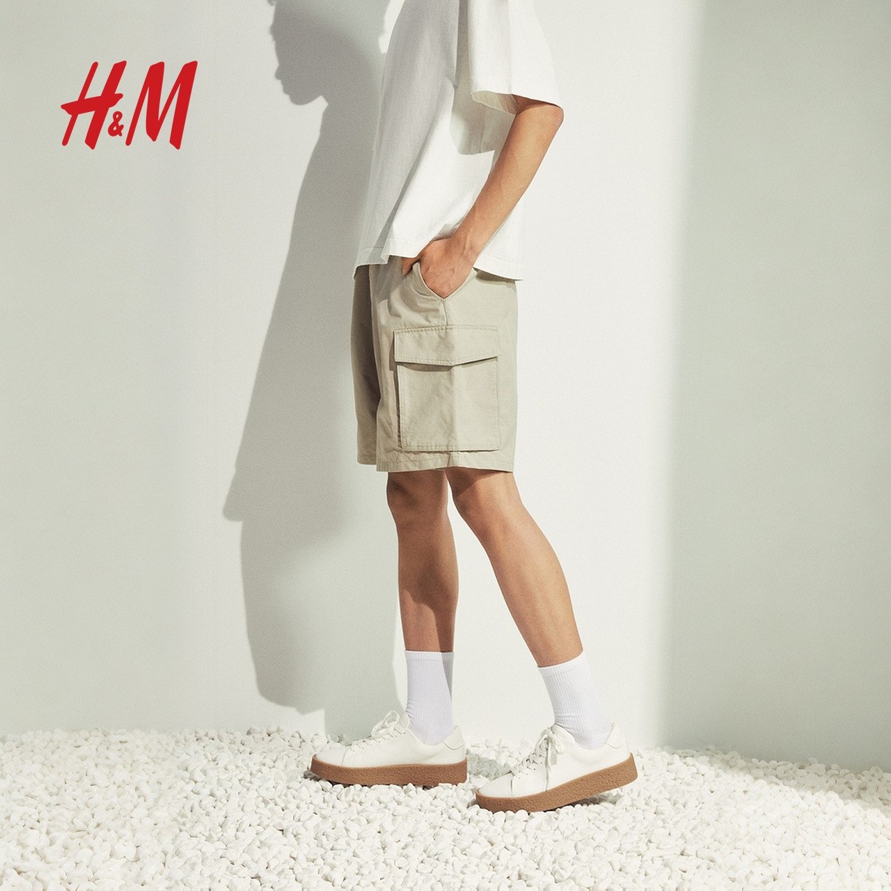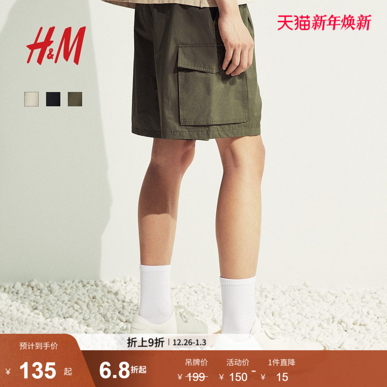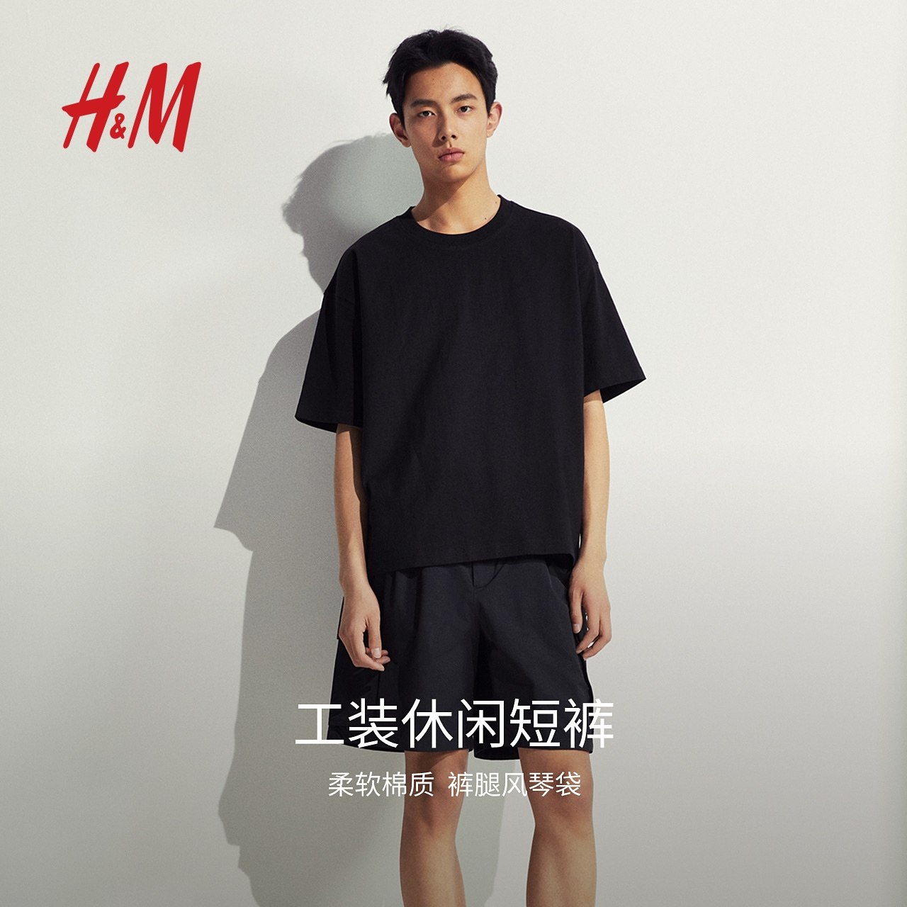 HM男装休闲裤春季宽松抽绳运动直筒美式多口袋工装短裤1245564