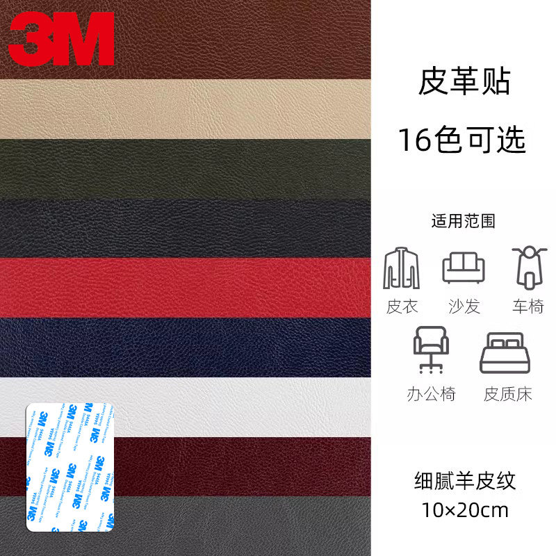 3M黑色皮衣修补贴皮夹克衣领羽绒服破损修复无痕补皮贴真皮沙发汽车坐垫自粘防刮床头软包耐高温可水洗布贴
