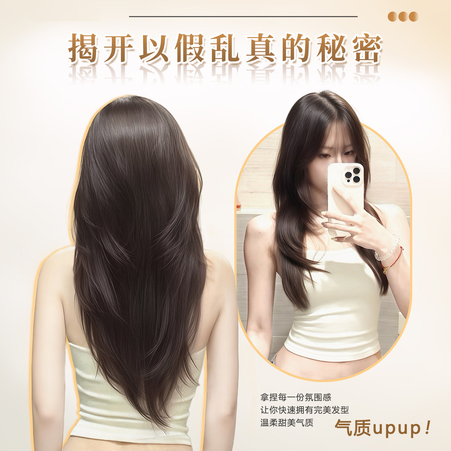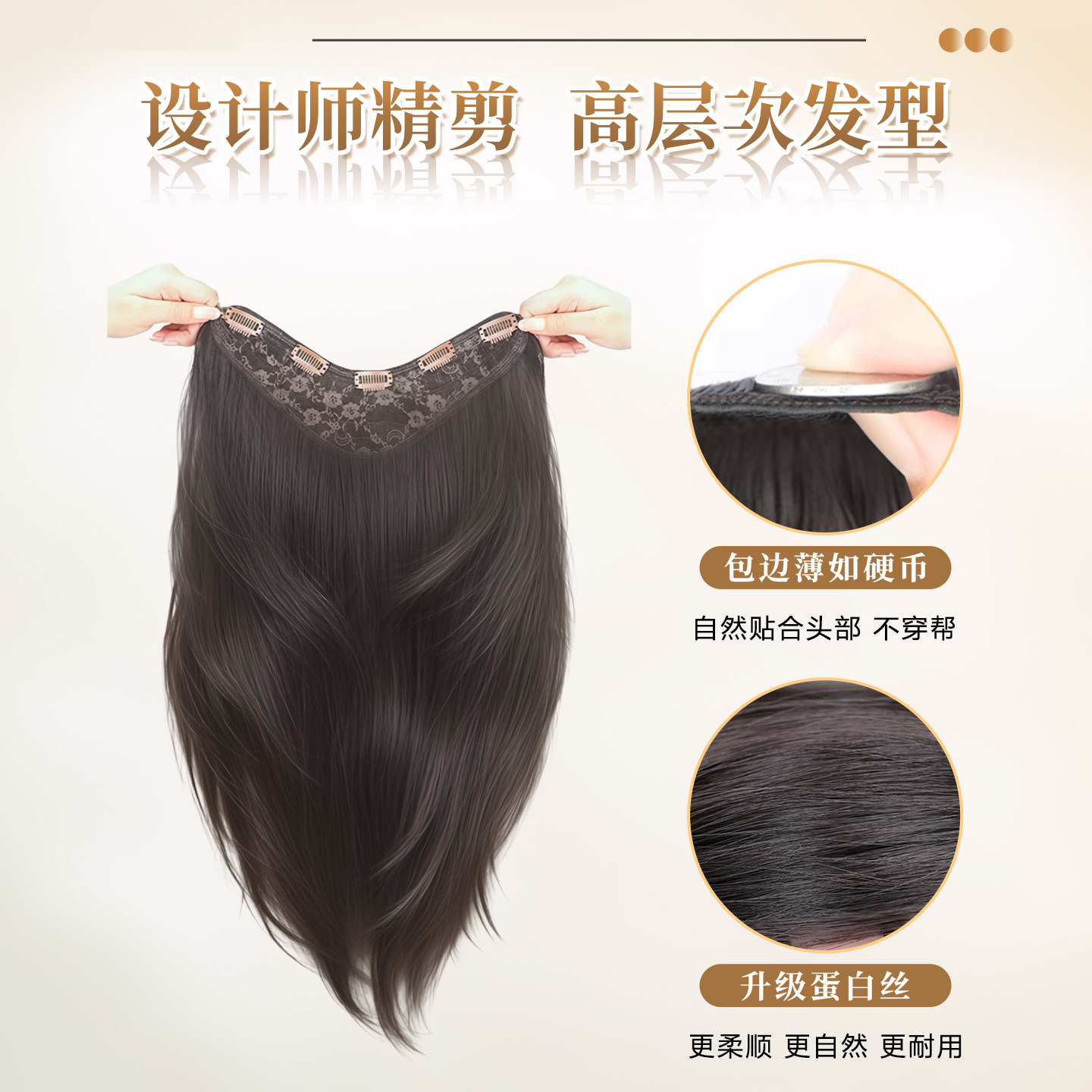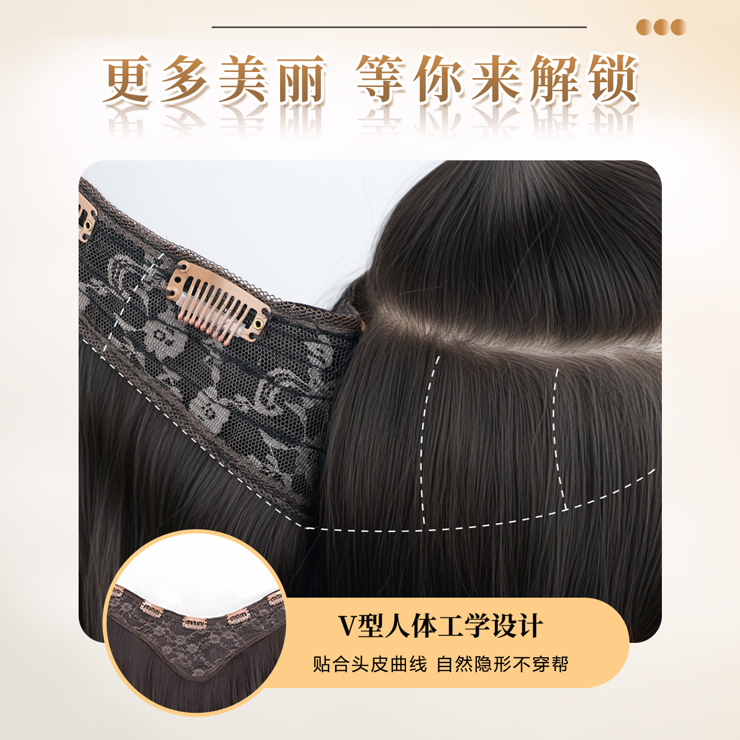 假发片女高层次增发量蓬松一片式v型无痕轻薄接发片短发挑染长发