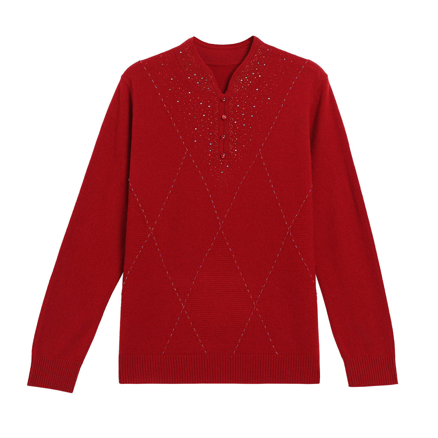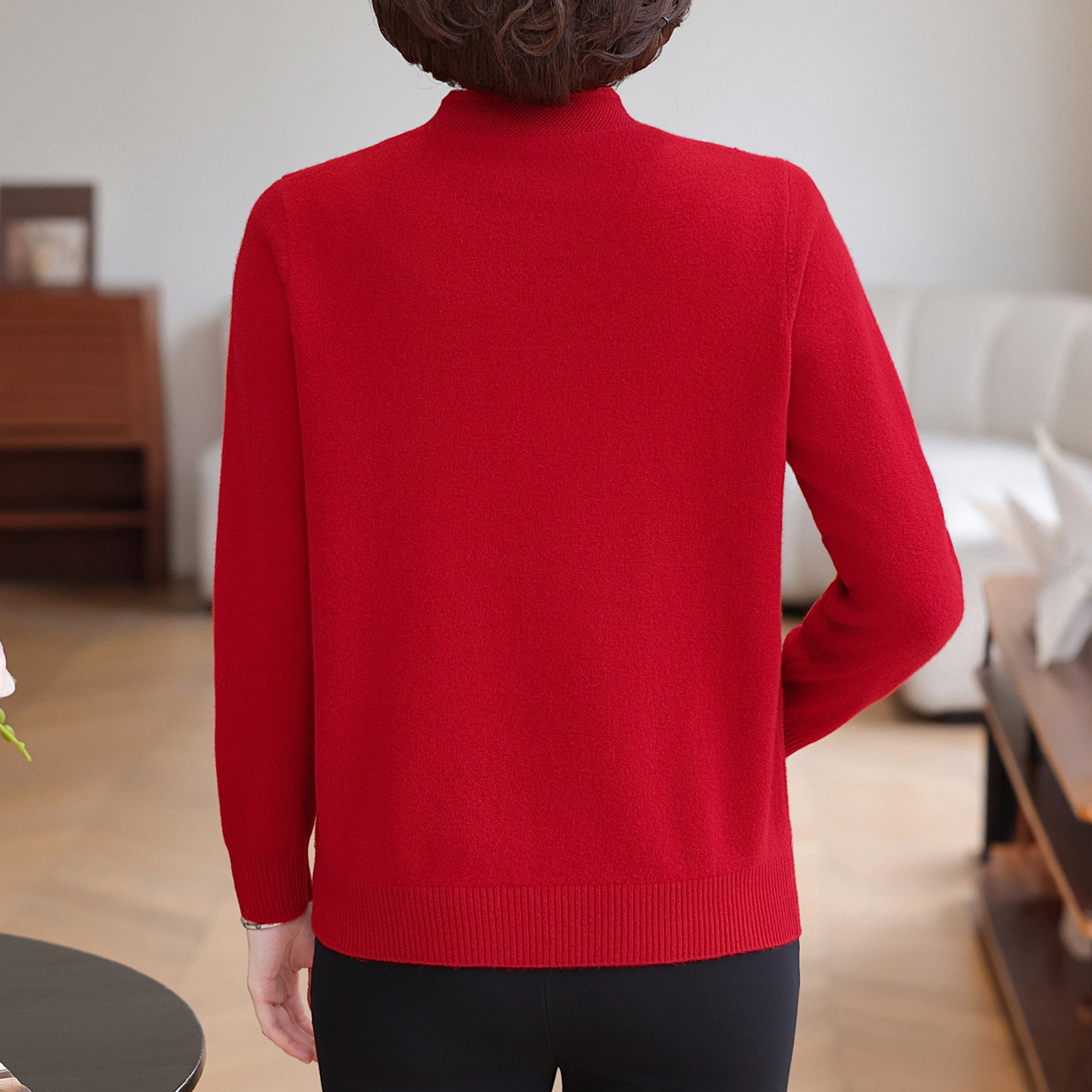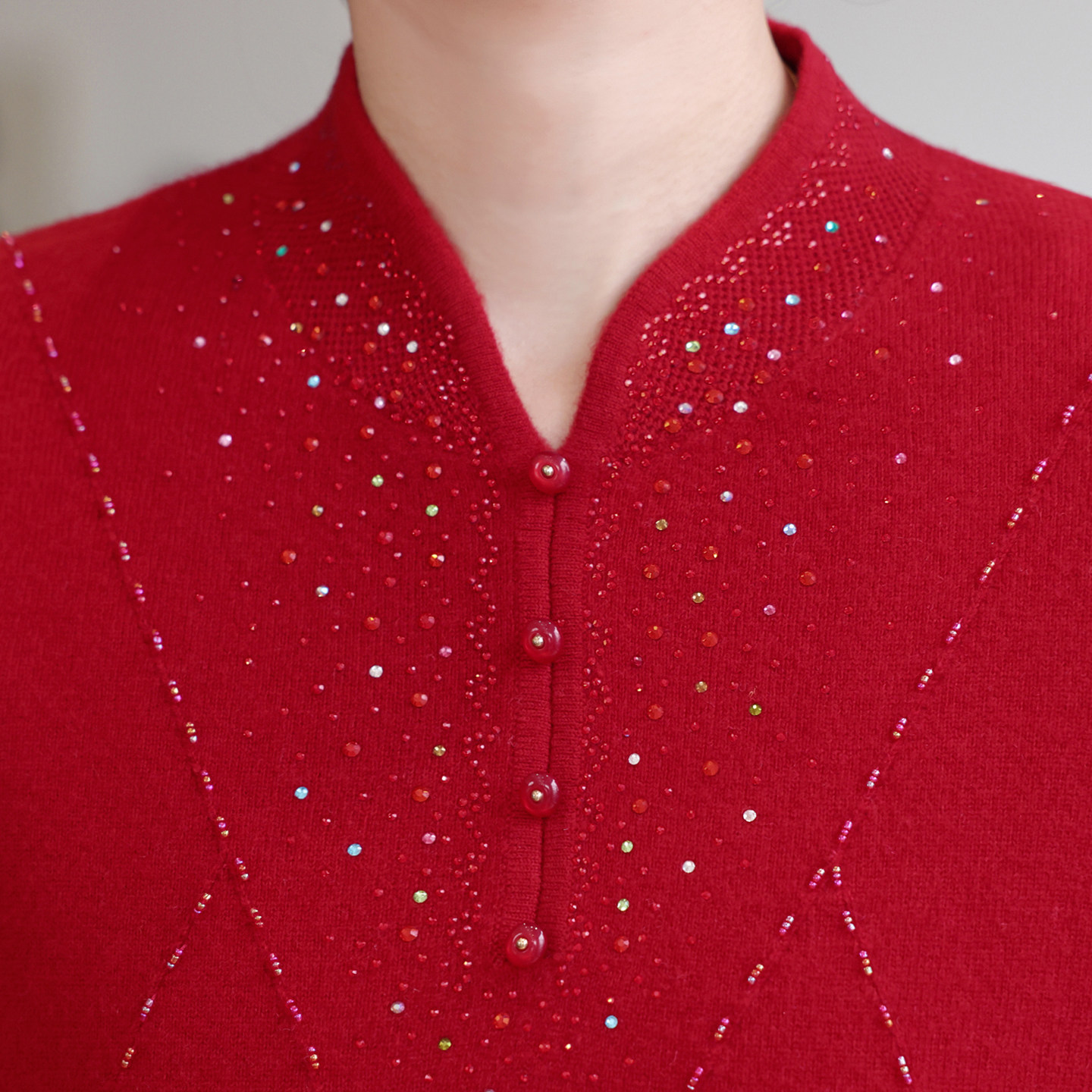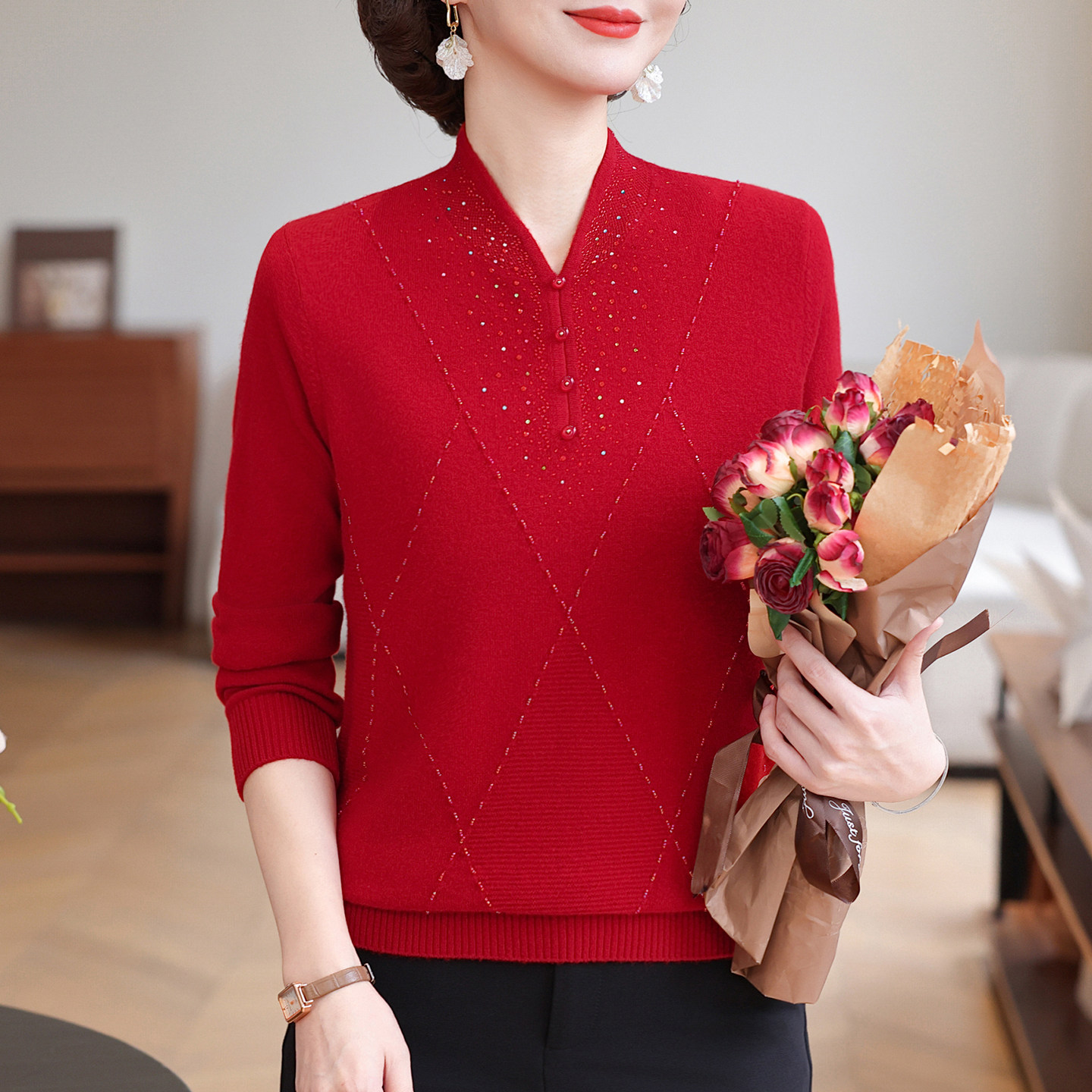 恒源祥纯羊毛衫女秋冬装2025新品妈妈装中国风旗袍领打底衫中老年