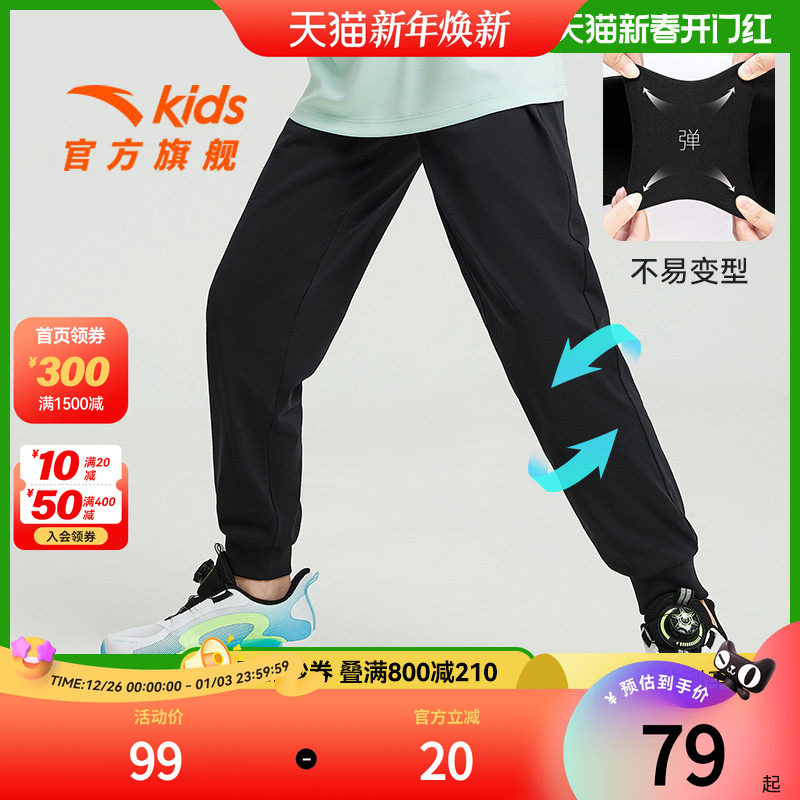 安踏儿童装男童裤子速干裤春秋款2025新款女童防蚊卫裤运动裤夏季