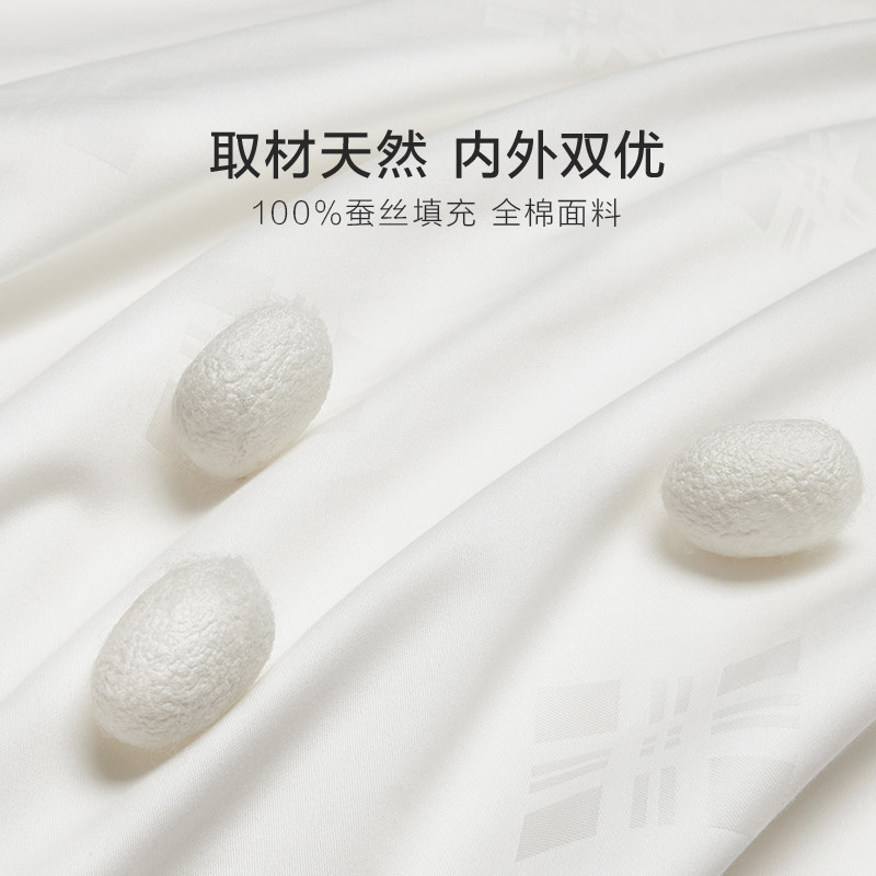 小红书同款水星家纺100支长绒棉巴马桑蚕丝被高端双宫茧秋冬被子