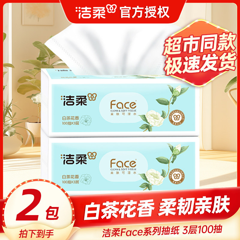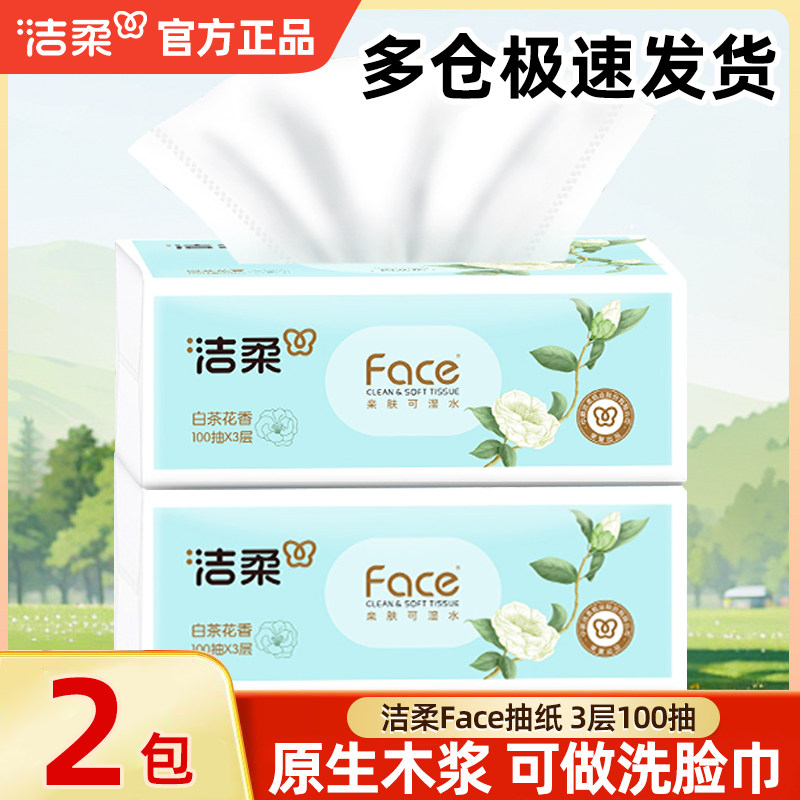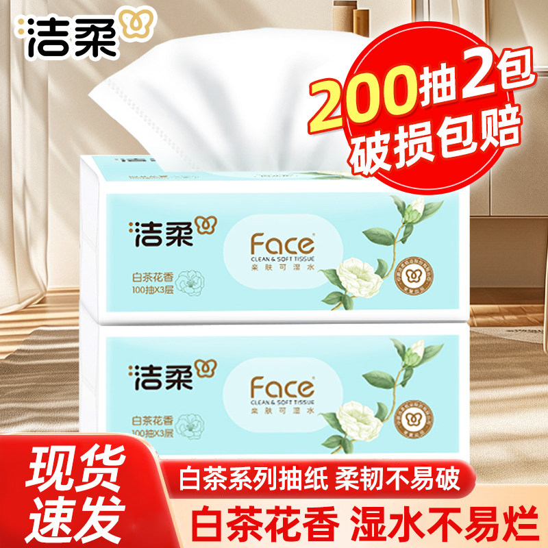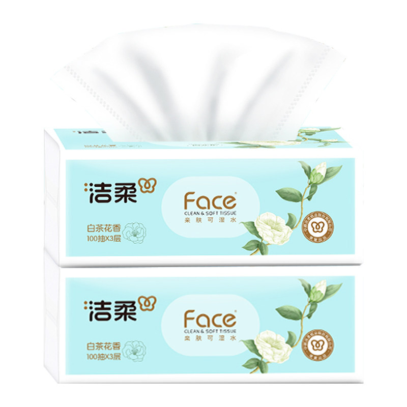洁柔抽纸白茶花香可湿水家用面巾纸整箱湿水餐巾纸实惠纸巾大包