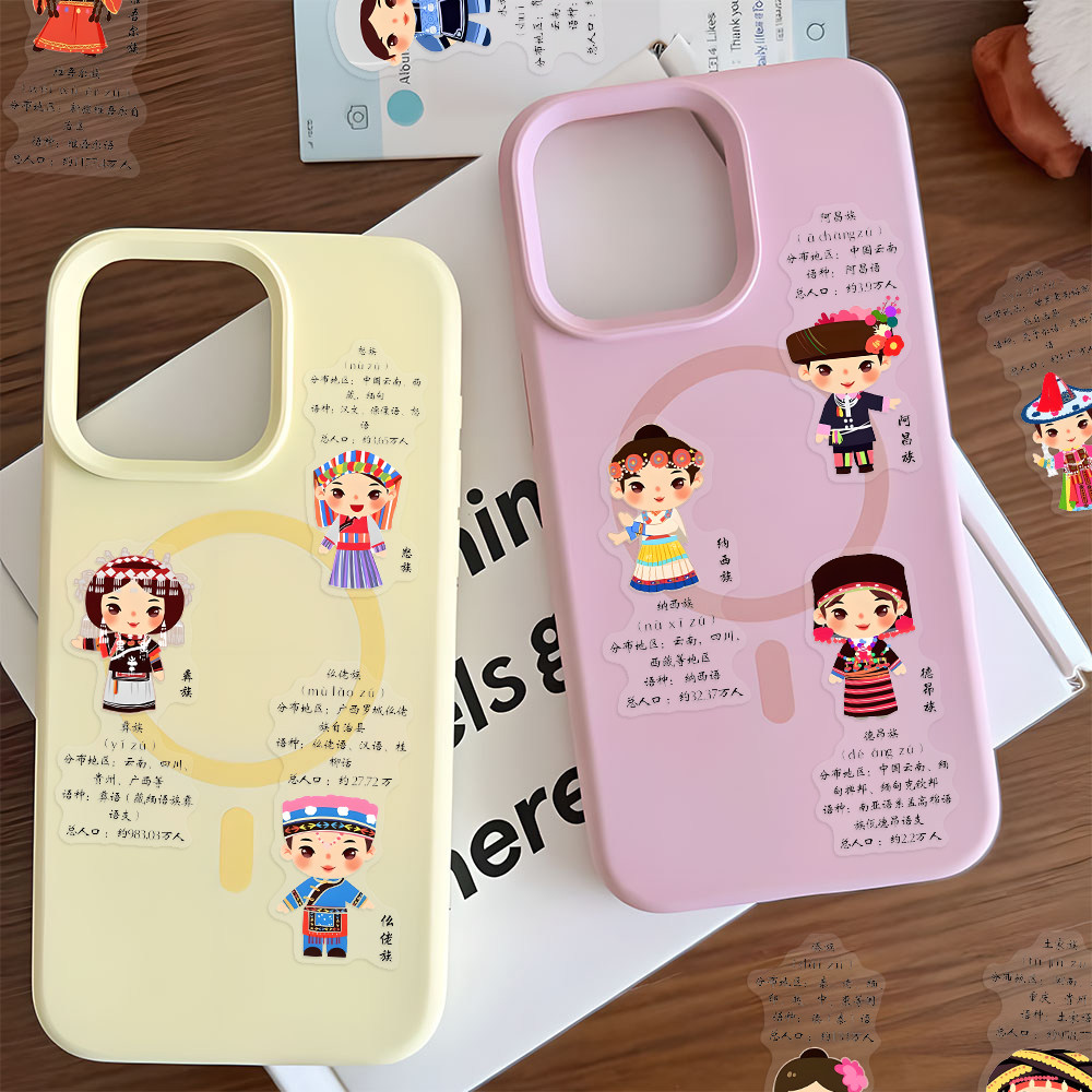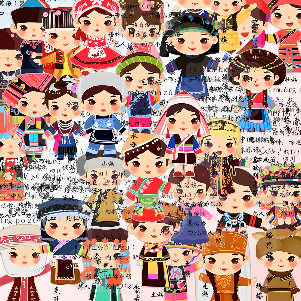 透明款】112张中国传统文化民族图解特色服饰卡通创意手账贴纸