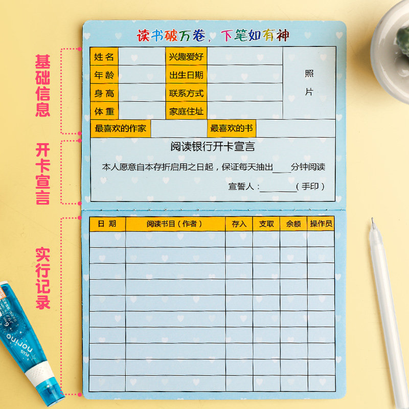 阅读存折本记录卡读书儿童心愿存折学习幼儿园成长小学生用一年级二年级三年级四年五年级积分奖励亲子登记册