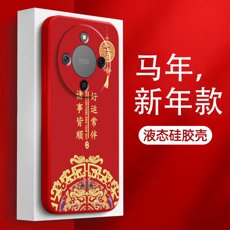 好运常伴适用于荣耀x70手机壳x70pro液态硅胶保护套镜头全包honorx70i防摔男女创意x7o指环por软壳个性中国风