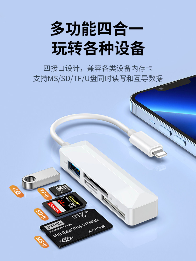 MS卡读卡器SD手机电脑多合一适用sony索尼相机ccd储存卡CF转换器记忆棒佳能苹果otg连接U盘传TF内存三合一