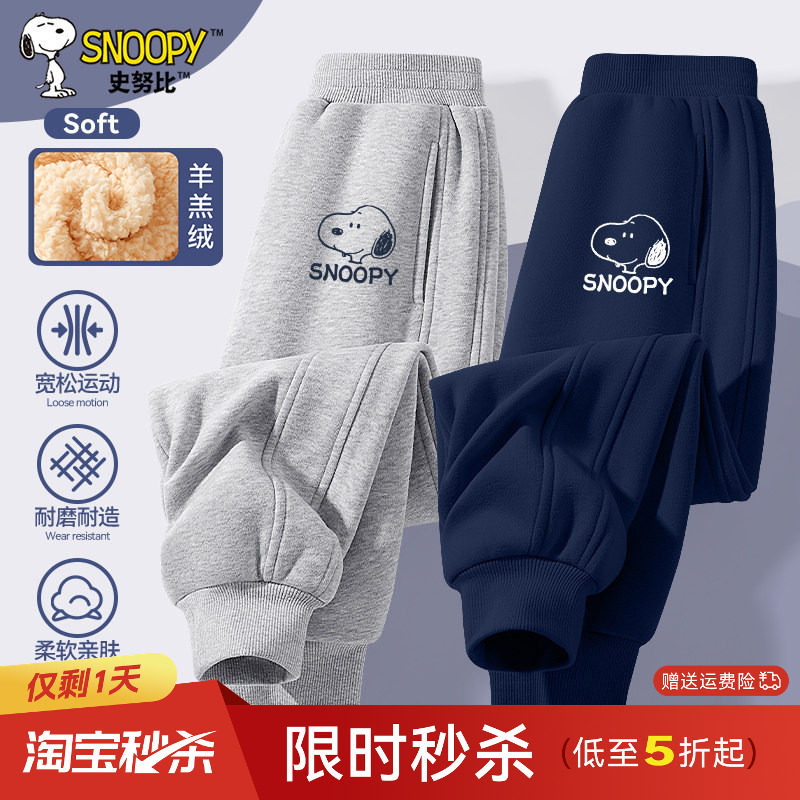 史努比男童裤子2025新款冬裤薄绒棉裤男孩加厚卫裤儿童加绒运动裤