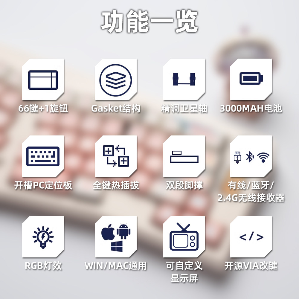 ABM066三模Alice机械键盘Gasket结构VIA客制化套件成品蓝牙静音