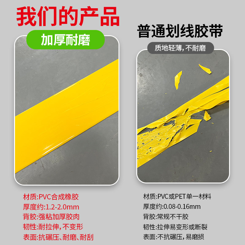 纳米地胶带PVC耐磨黄色地板胶警示胶带定位划线标识重载橡塑超加厚地标线防水5s6高粘度胶布橡胶背胶地面瓷砖