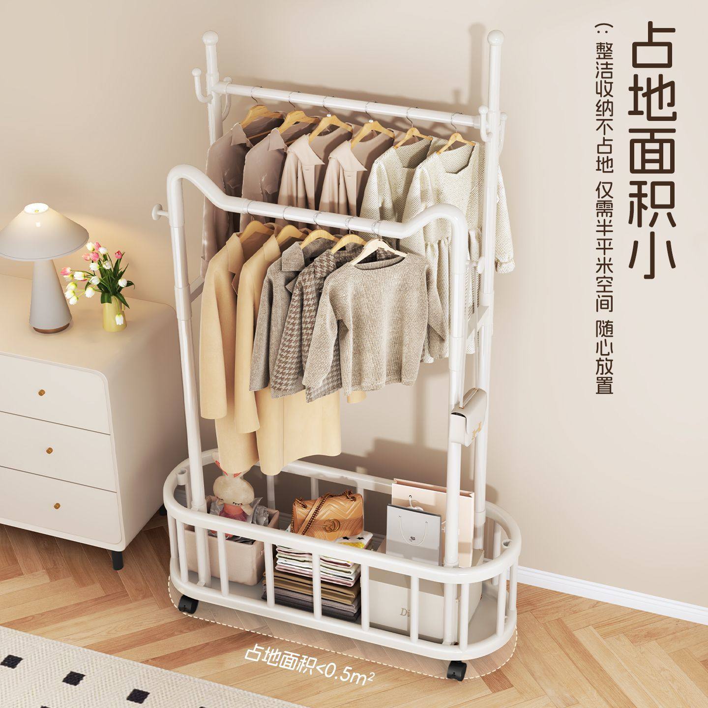 衣架落地卧室奶油风挂衣架家用铁艺简易晾衣架室内客厅移动衣帽架