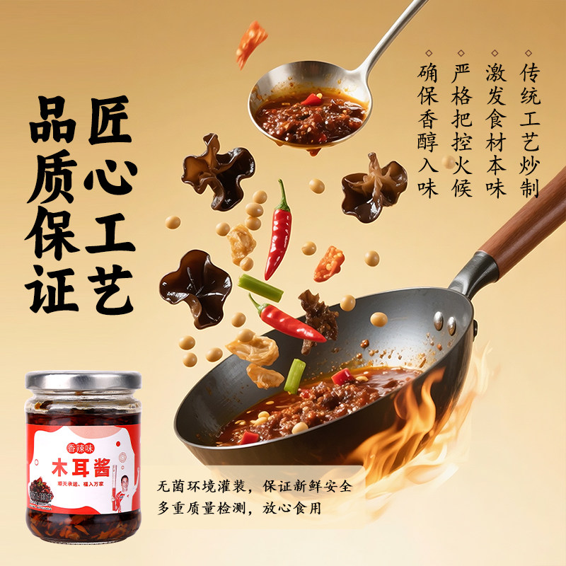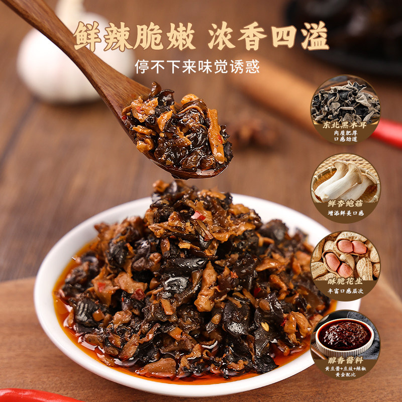 香辣木耳酱拌饭拌面酱料辣椒酱素肉碎蘑菇下饭酱菜调味酱料家用