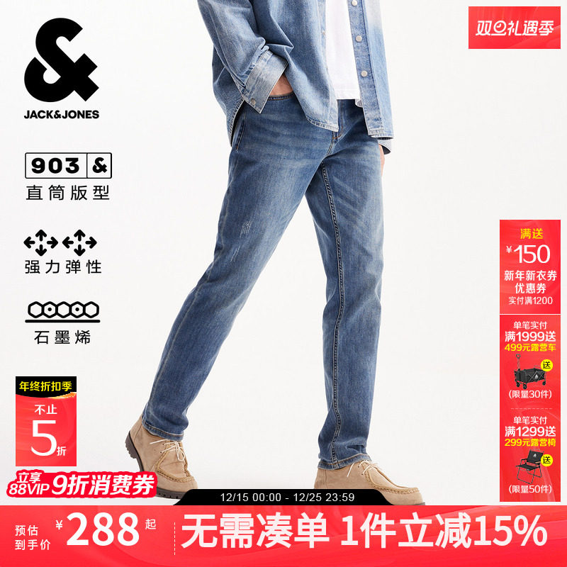 [石墨烯]903杰克琼斯秋季复古水洗修身直筒弹力牛仔裤长裤子男装
