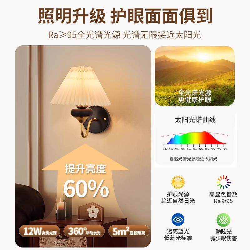 汇园卧室床头壁灯2025年新款中古风法式布艺花纹客厅书房拉链1