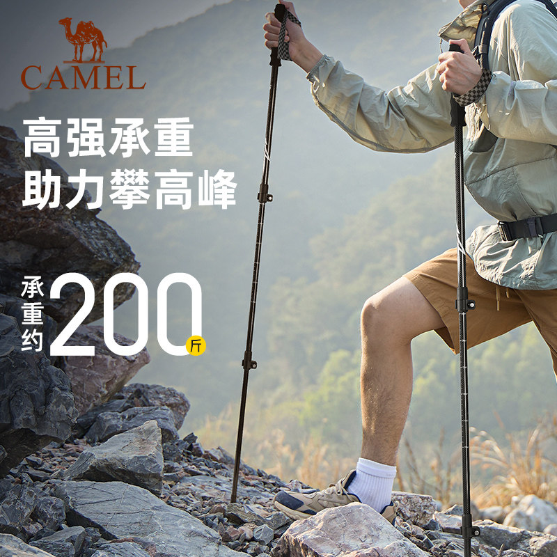 骆驼登山杖手杖碳素轻便伸缩折叠徒步爬山拐棍老人防滑碳纤维拐杖
