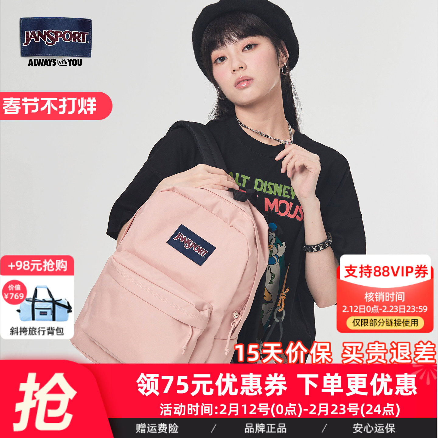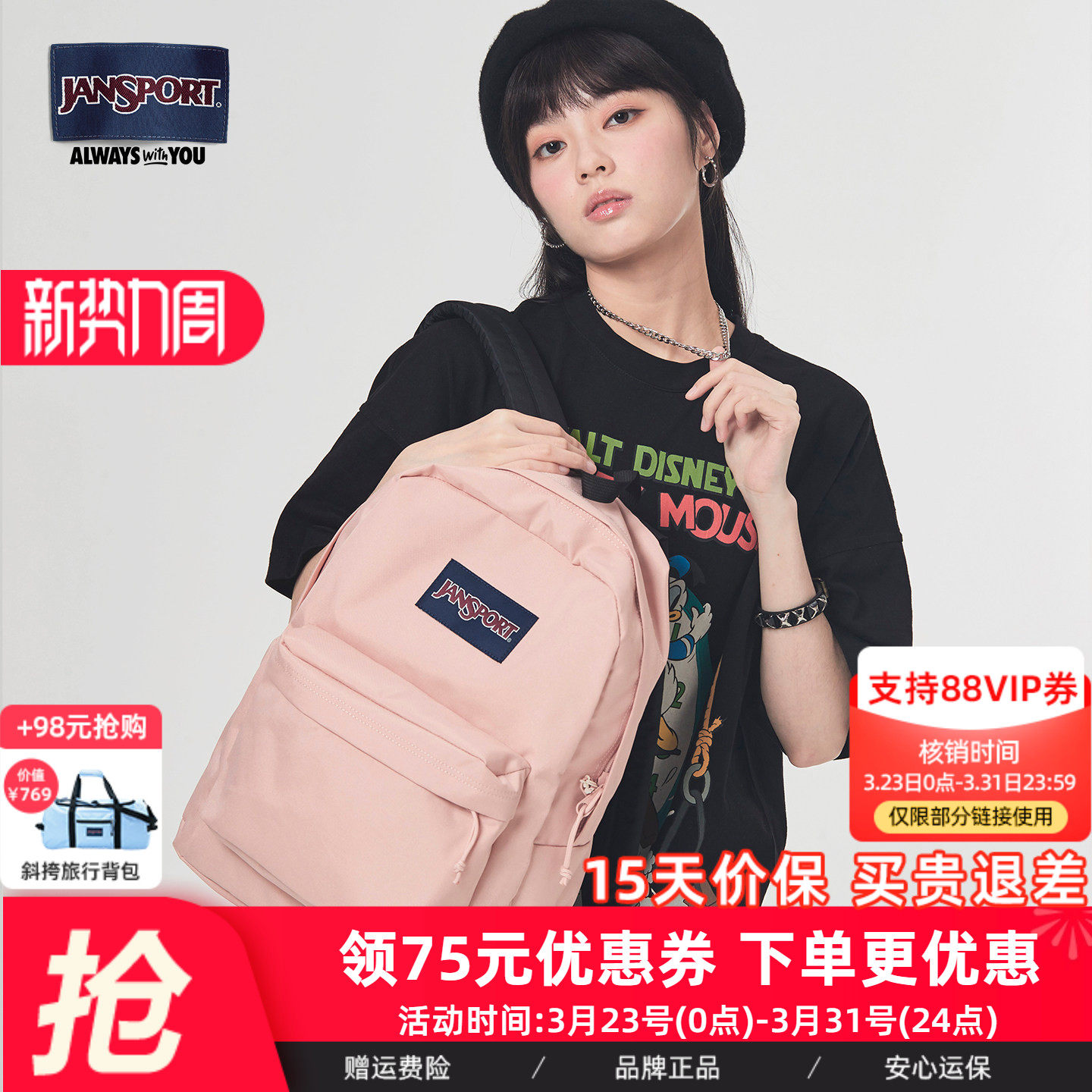 JanSport经典双肩包初高中学生男女欧若风蜜蜡粉背包ins少女书包