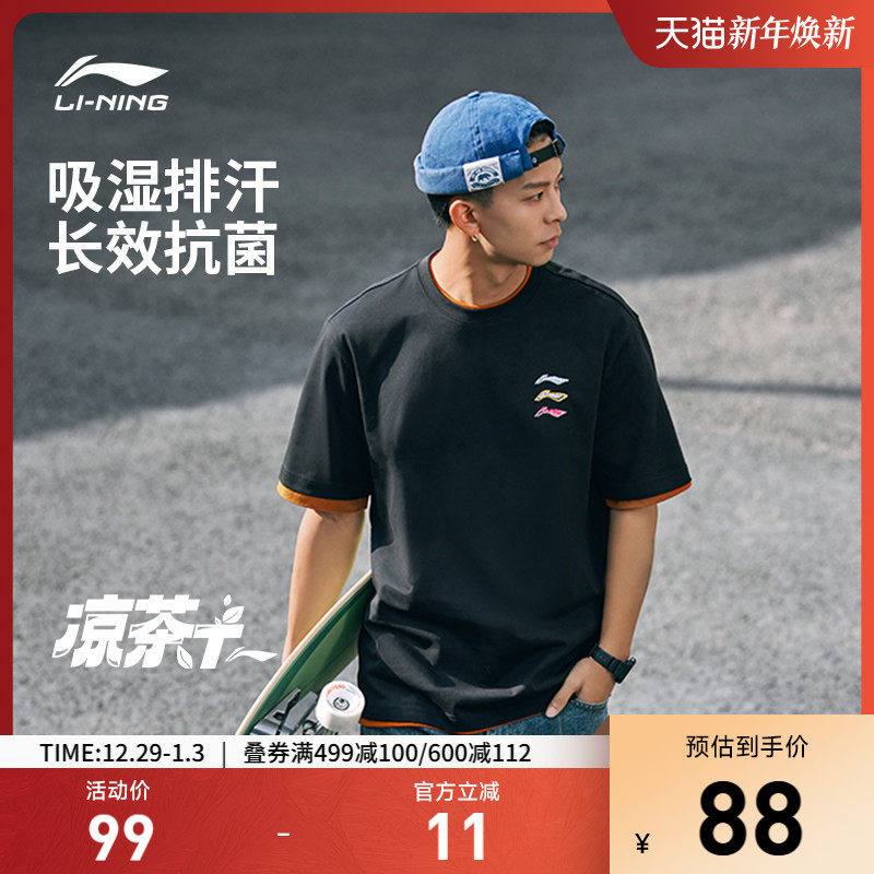 李宁凉茶T短袖男士夏季休闲体恤男装宽松半袖透气运动T恤上衣男