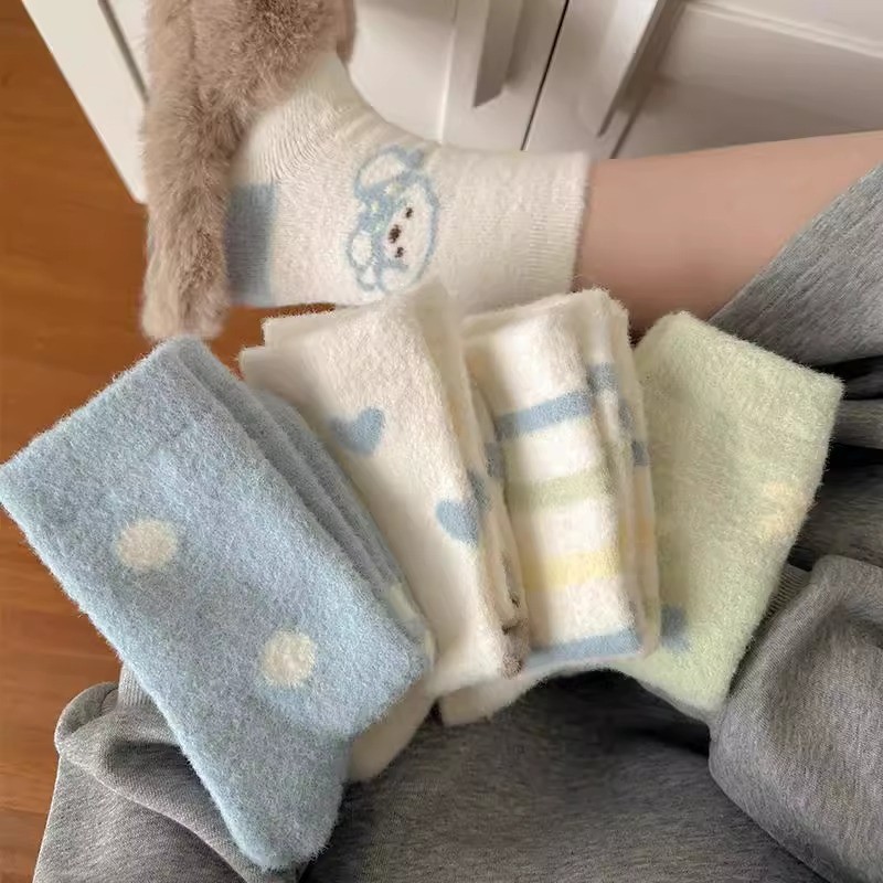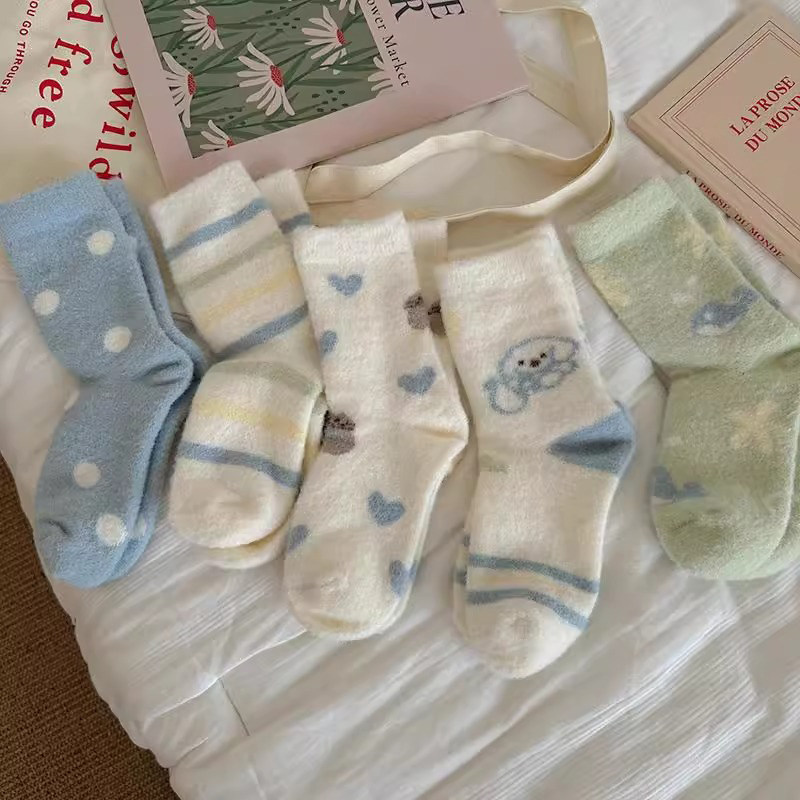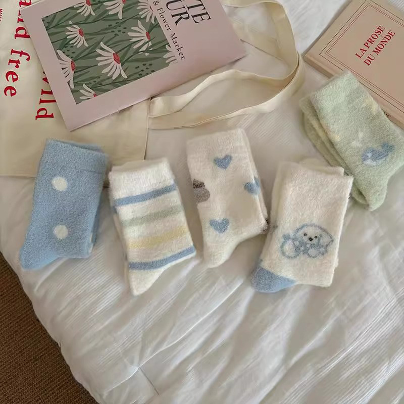 卡通加厚水貂绒袜子女款中筒袜秋冬季就艾绒保暖可爱毛绒长袜加绒
