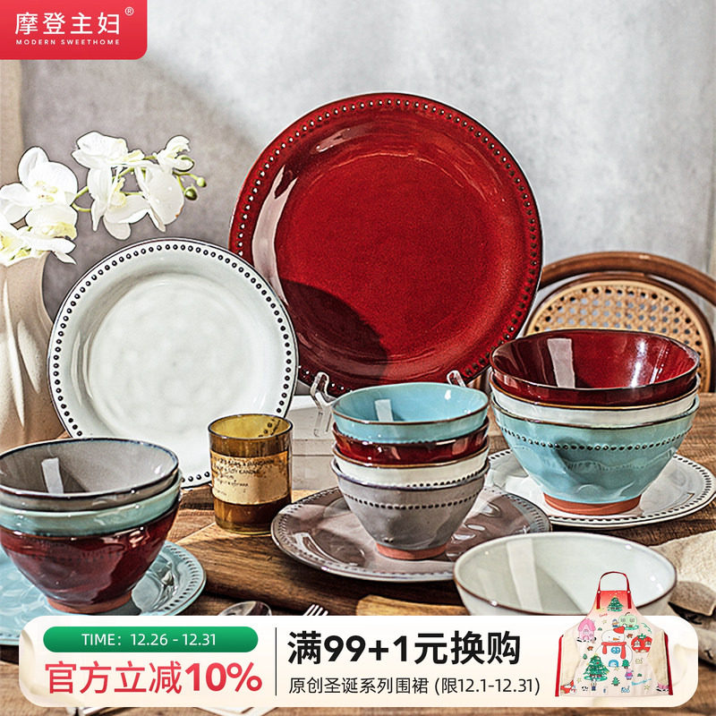 摩登主妇窑变碗盘碟餐具家用2025新款高颜值米饭碗汤面碗盘子餐盘
