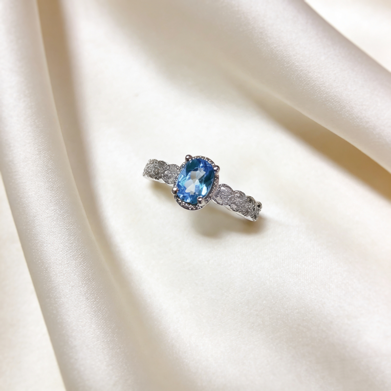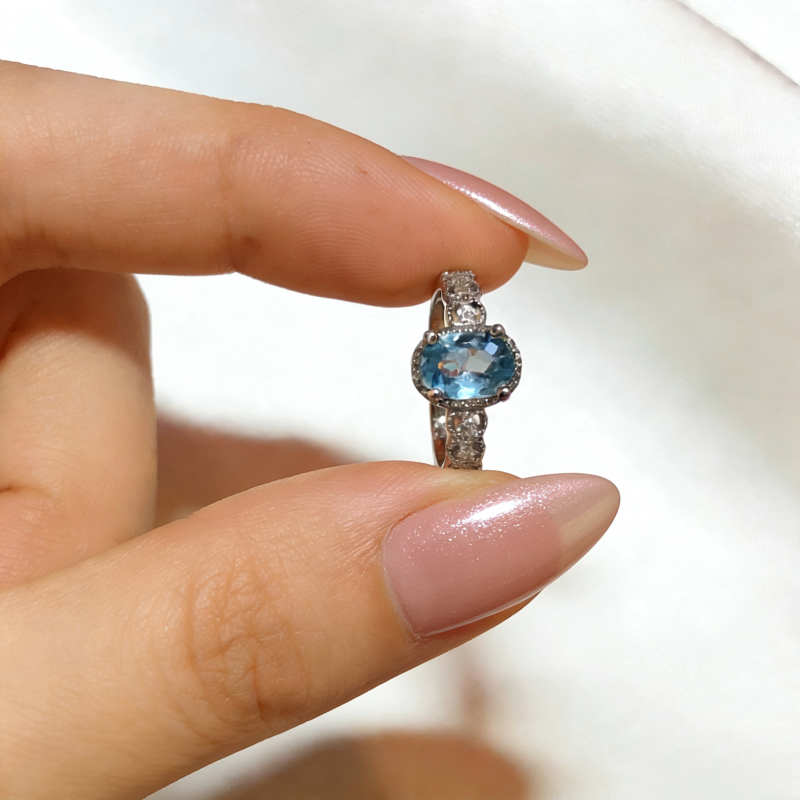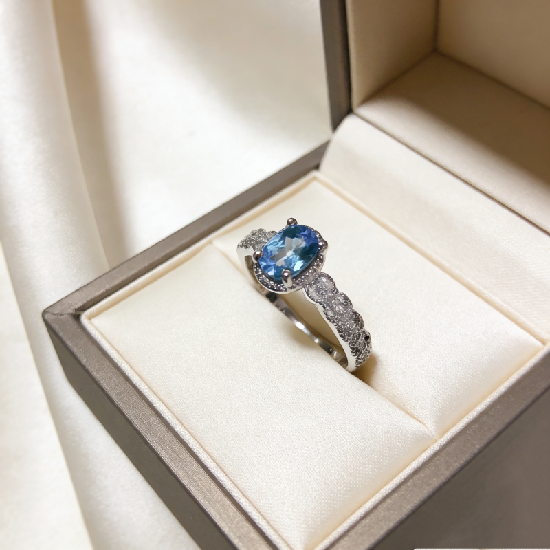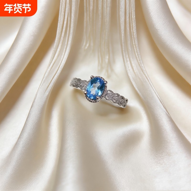 新款天然伦敦蓝托帕石戒指蓝色宝石百搭女士气质指环时尚