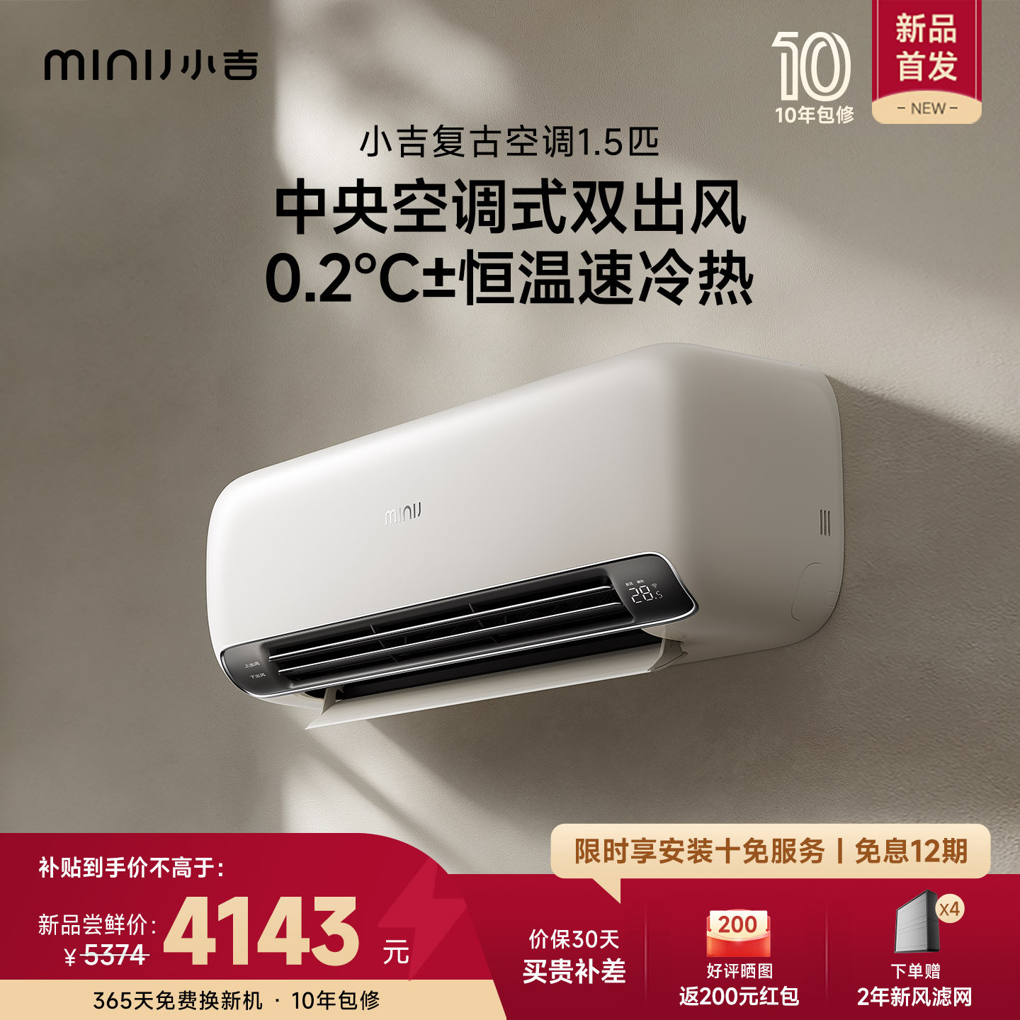 小吉空调1.5匹一级能效新风分体式冷暖两用变频省电家用复古挂机