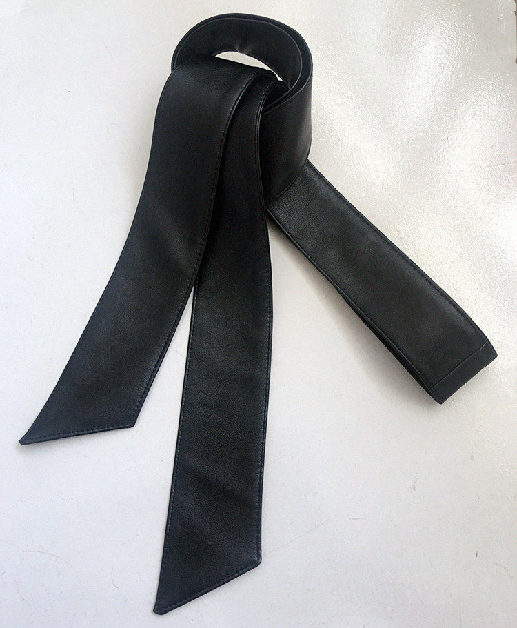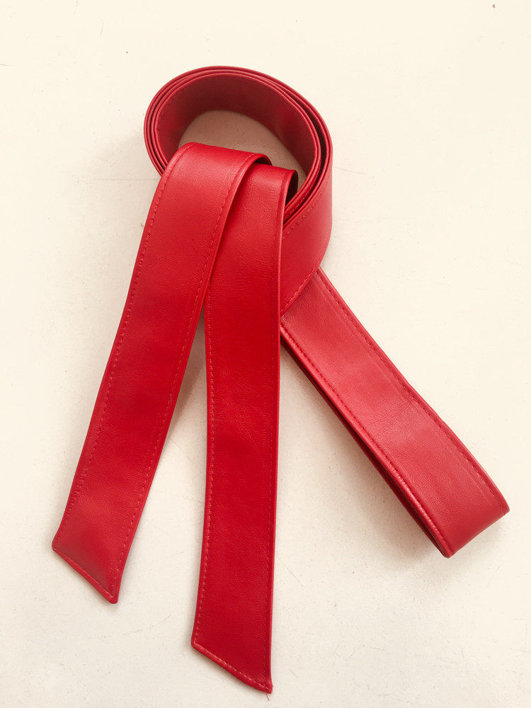柔软百搭绵羊皮宽腰带女蝴蝶结软皮带皮草大衣皮带风衣羽绒服