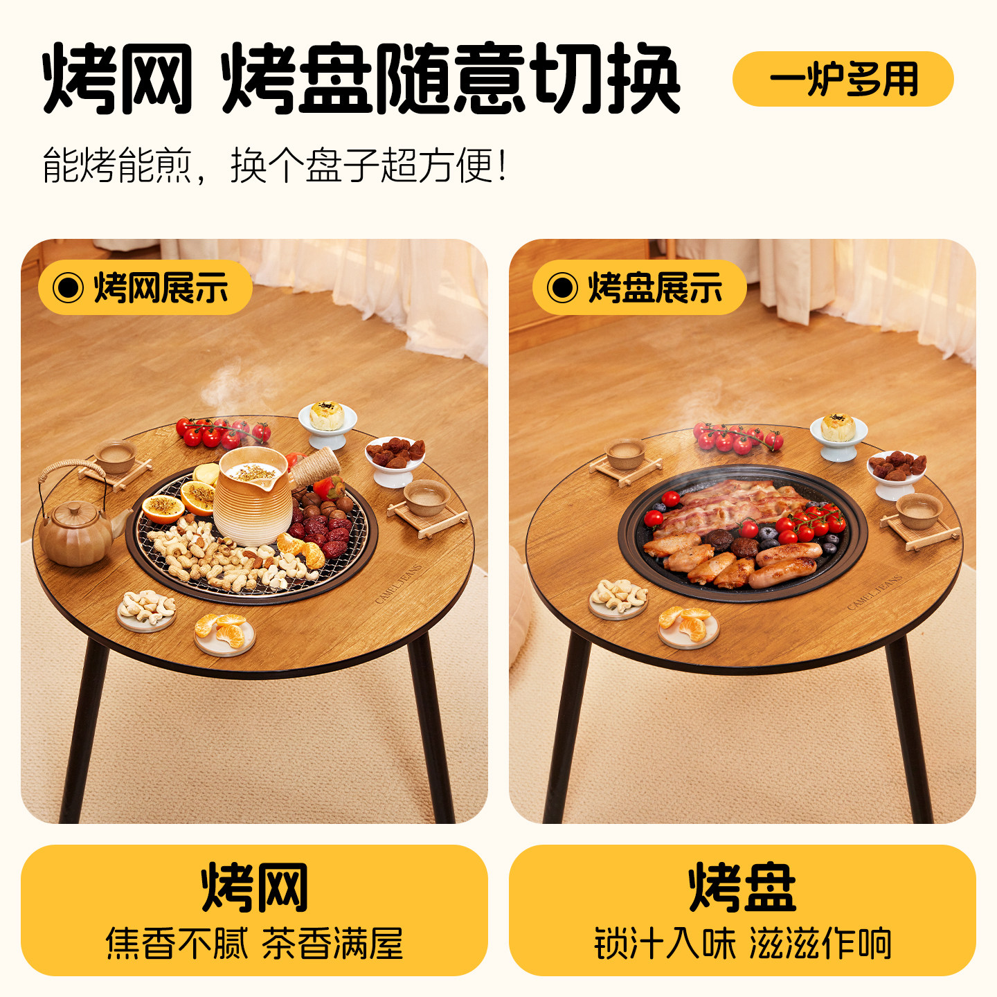 cameljeans围炉煮茶桌电碳两用烤奶烧烤炉家用户外露营烤火炉套装