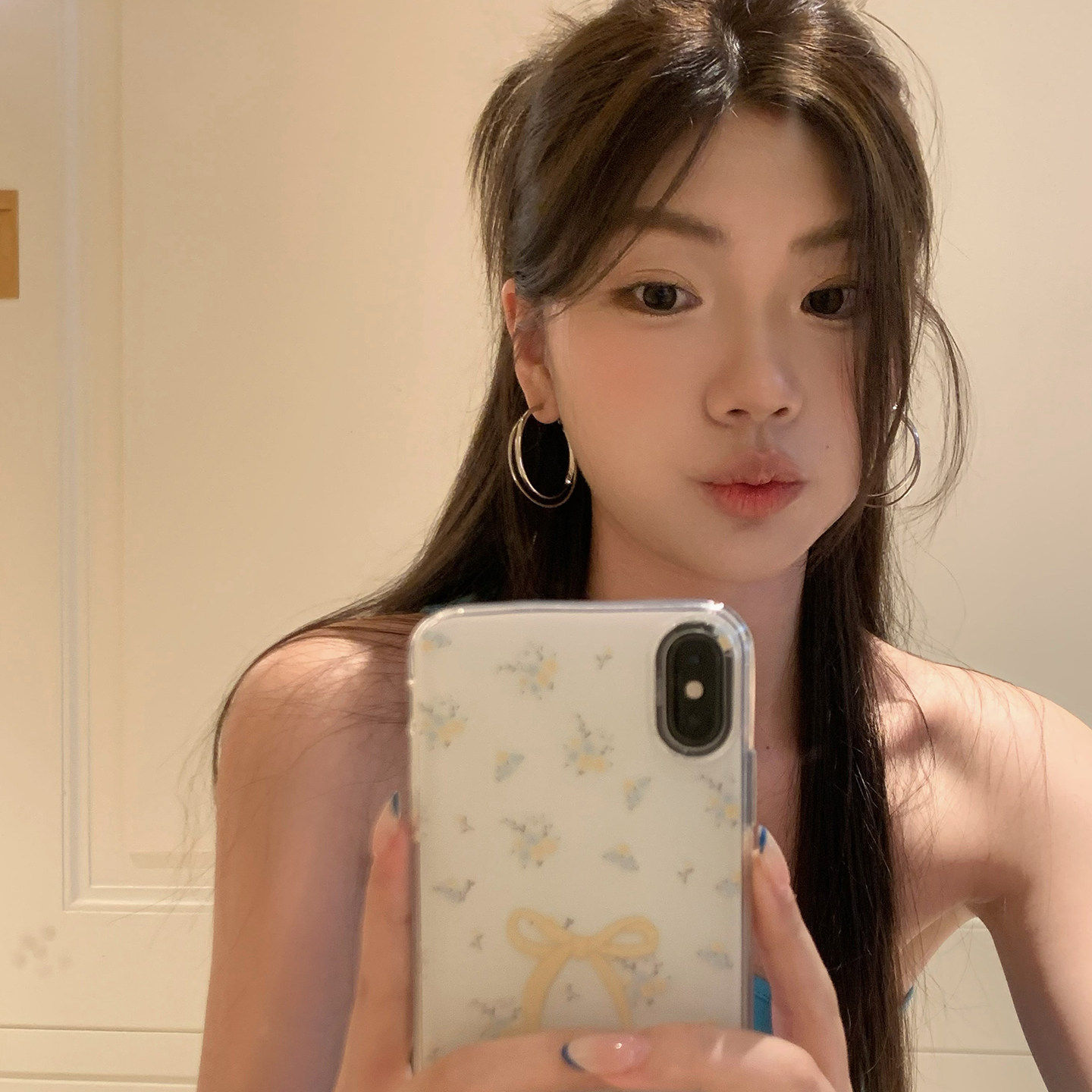 银色素圈耳环女夸张大耳圈2025新款爆款高级感圈圈耳饰耳圈耳夹