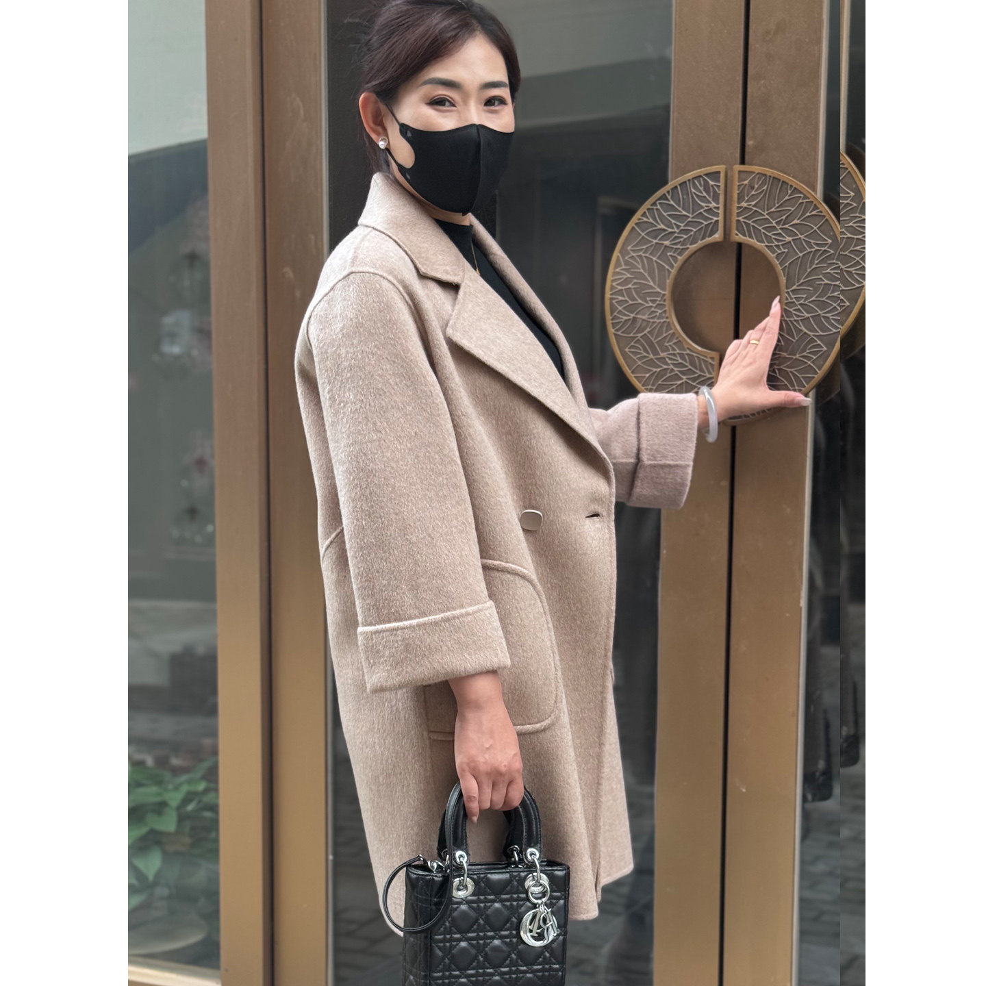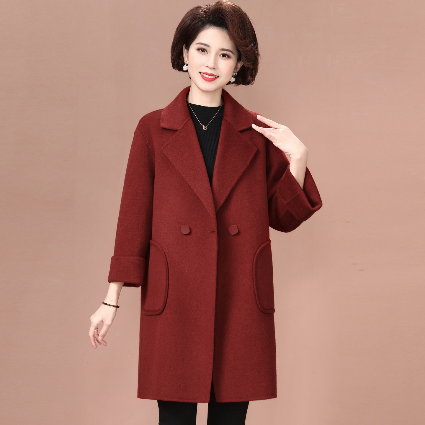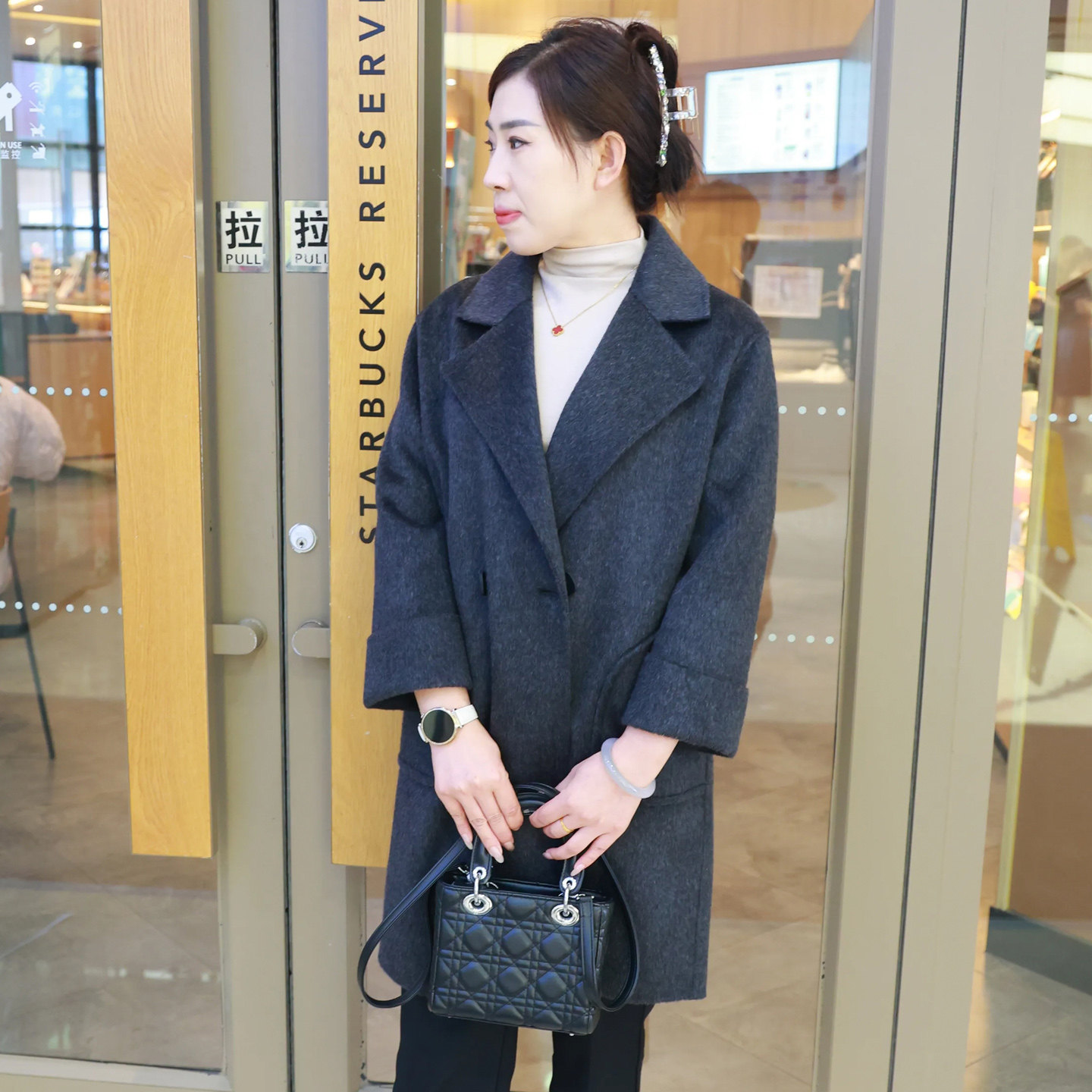 气质高级双面羊绒大衣女中长款秋冬新款宽松大码妈妈西装毛呢外套
