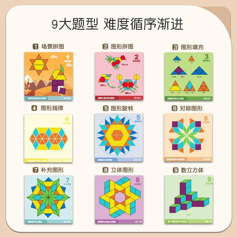 蒙氏早教儿童几何认知积木思维训练卡片宝宝七巧板拼板木质玩具