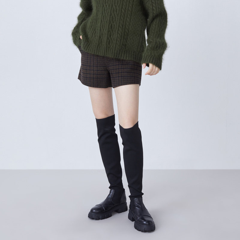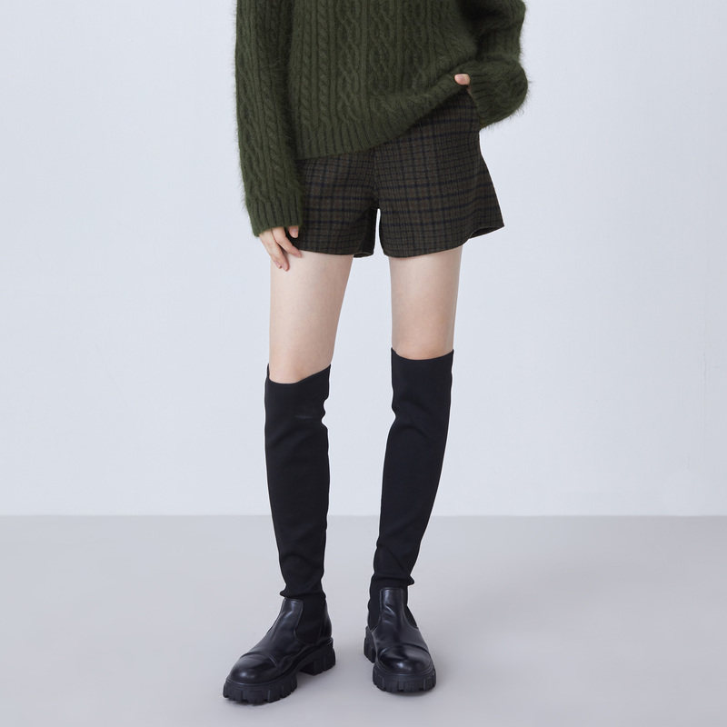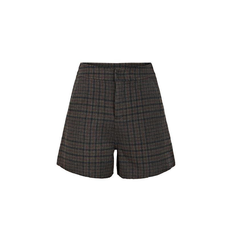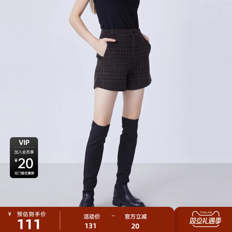 S·DEER圣迪奥女装冬季时尚休闲撞色格纹毛呢A字短裤S21480901
