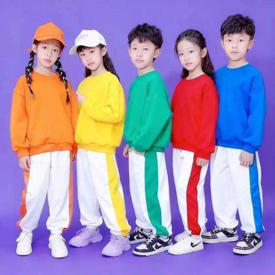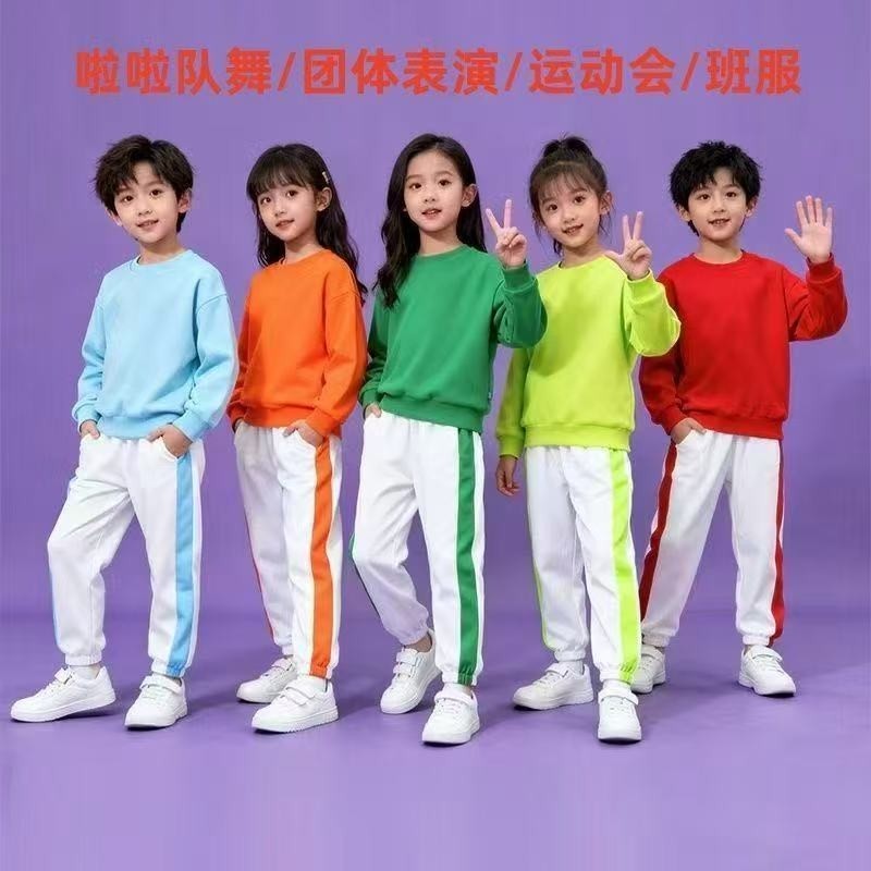 糖果色儿童卫衣卫裤套装幼儿园啦啦队演出服彩果色运动会班服合唱