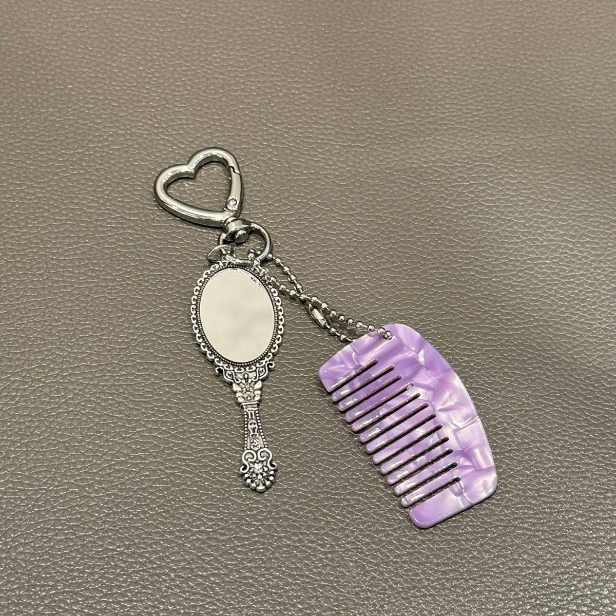 时尚醋酸方形迷你梳子车载包包挂件钥匙扣个性手柄化妆镜挂饰