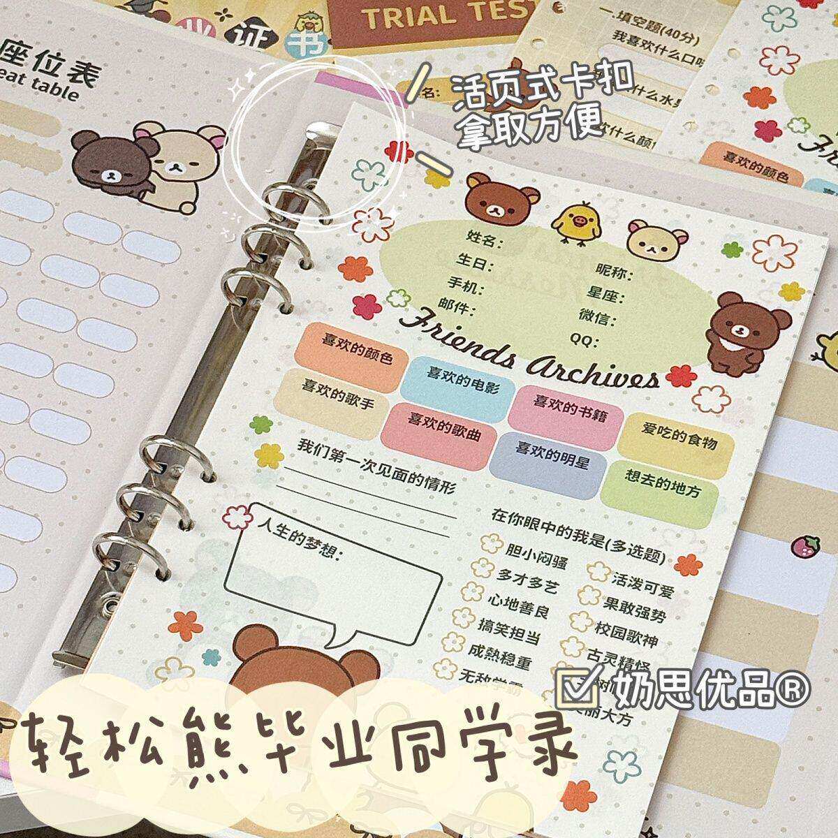 古早可爱轻松熊毕业同学录高颜值小学生六年级留言册卡通纪念册