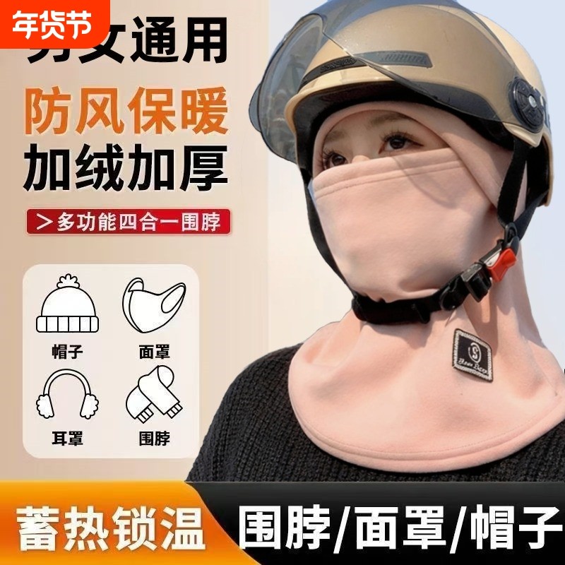 骑车帽子女秋冬季防寒加厚保暖面罩防风围脖一体头盔骑行加绒灰色