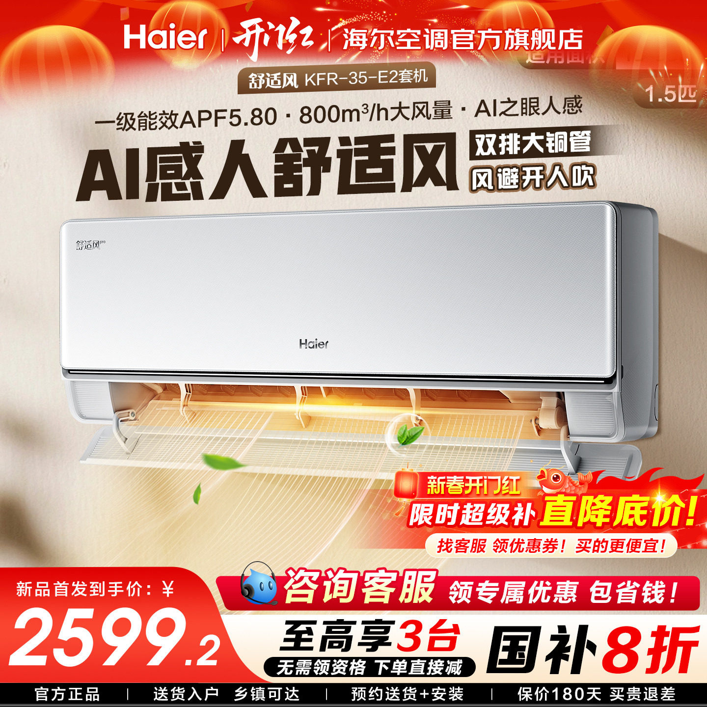 【国补8折】海尔空调1.5匹家用一级能效变频卧室挂机冷暖E1旗舰店