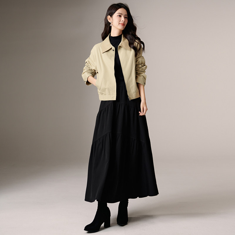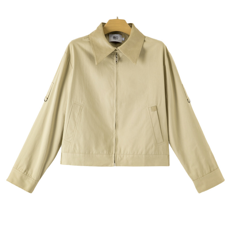 晚白2026年春新款棉翻领上衣今年流行时髦巴恩风夹克外套女
