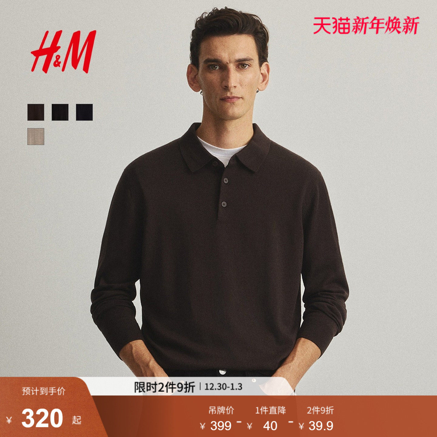 HM2025冬季新款男装标准版型羊毛Polo衫1287986